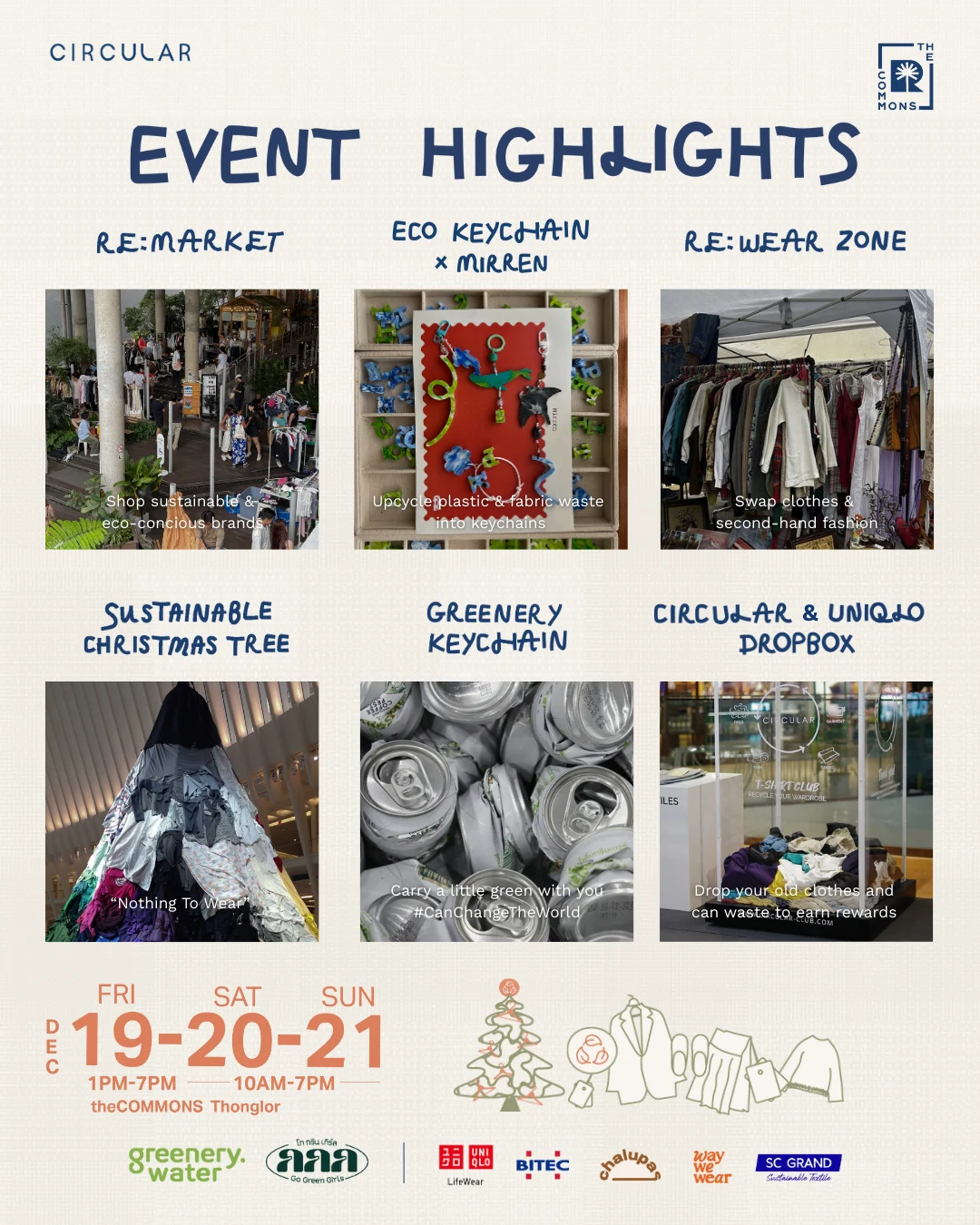 โดยงานนี้ได้รวบรวมแฟชั่น ไลฟ์สไตล์ และแนวคิดเรื่องความยั่งยืนไว้ด้วยกัน พร้อมเรียนรู้มุมมองใหม่ของการใช้ชีวิตอย่างยั่งยืน หรือ Sustainable Lifestyle ผ่านกิจกรรมหลากหลายตลอดวันที่ 19–21 ธันวาคม 2568 ณ theCOMMONS Thonglor