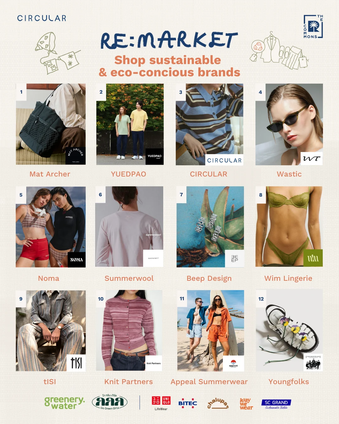 • RE:MARKET ตลาดรวมสินค้าแฟชั่นและไลฟ์สไตล์จากแบรนด์สายกรีนกว่า 12 แบรนด์ ให้เลือกช้อป