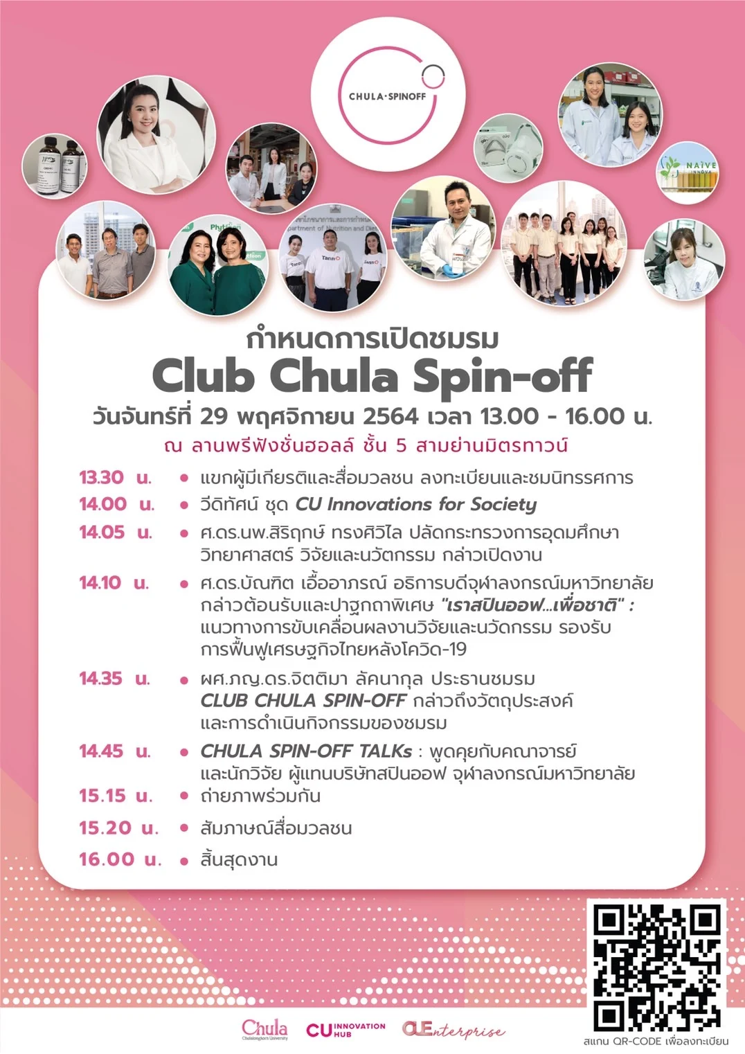 - แนะนำ “Club Chula Spin-off” โดย ผศ.ภญ.ดร.จิตติมา ลัคนากุล ประธานชมรม Club Chula Spin-off