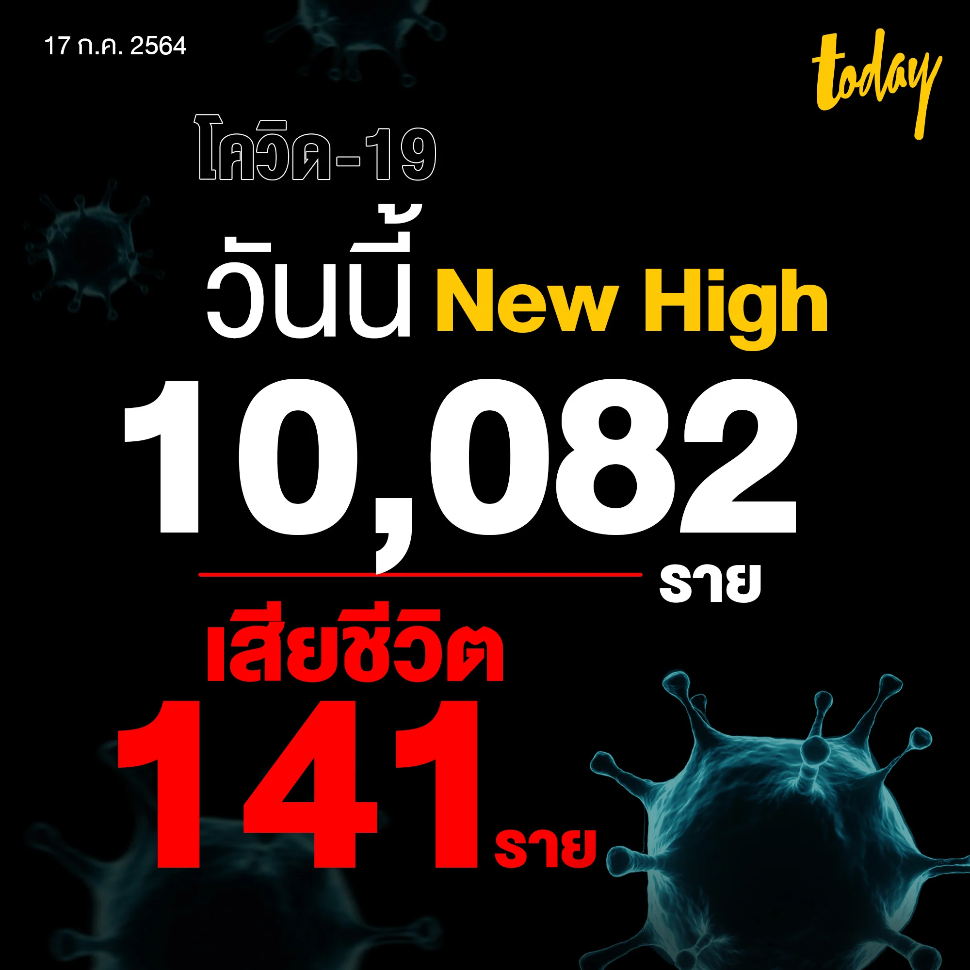 วันที่ 17 ก.ค.2564 สถานการณ์การติดเชื้อโควิด-19 รายใหม่ วันนี้พบยอดผู้ติดเชื้อใหม่รวม 10,082 ราย จำแนกเป็นติดเชื้อใหม่ 9,955 ราย ติดเชื้อภายในเรือนจำ/ที่ต้องขัง 127 ราย ยืนยันสะสม 363,126 ราย (ตั้งแต่ 1 เมษายน) หายป่วยกลับบ้าน 6,327 ราย มีผู้เสียชีวิตเพิ่ม 141 ราย
