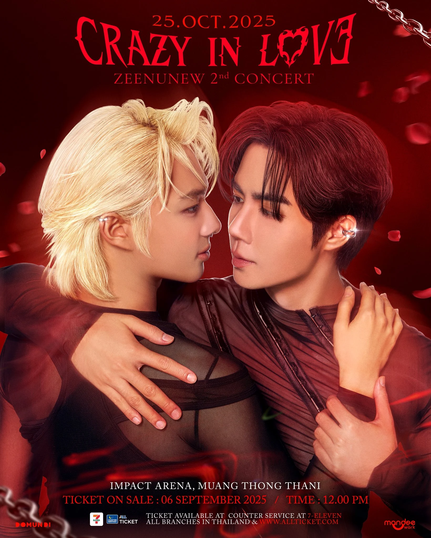 การกลับมาอีกครั้งกับคอนเสิร์ตที่แฟนคลับทุกคนตั้งตารอ! เตรียมหัวใจของคุณให้พร้อมกับปรากฏการณ์ความรักที่จะถ่ายทอดโดยสองศิลปินคู่ขวัญแห่งยุค “ซี พฤกษ์ พานิช” และ “นุนิว ชวรินทร์ เพริศพิริยะวงศ์” ในคอนเสิร์ตใหญ่เต็มรูปแบบครั้งที่ 2 ในงาน “ZeeNuNew 2nd Concert “CRAZY IN LOVE” ที่จะเกิดขึ้นในวันเสาร์ที่ 25 ตุลาคม 2568 ณ อิมแพ็ค อารีน่า เมืองทองธานี