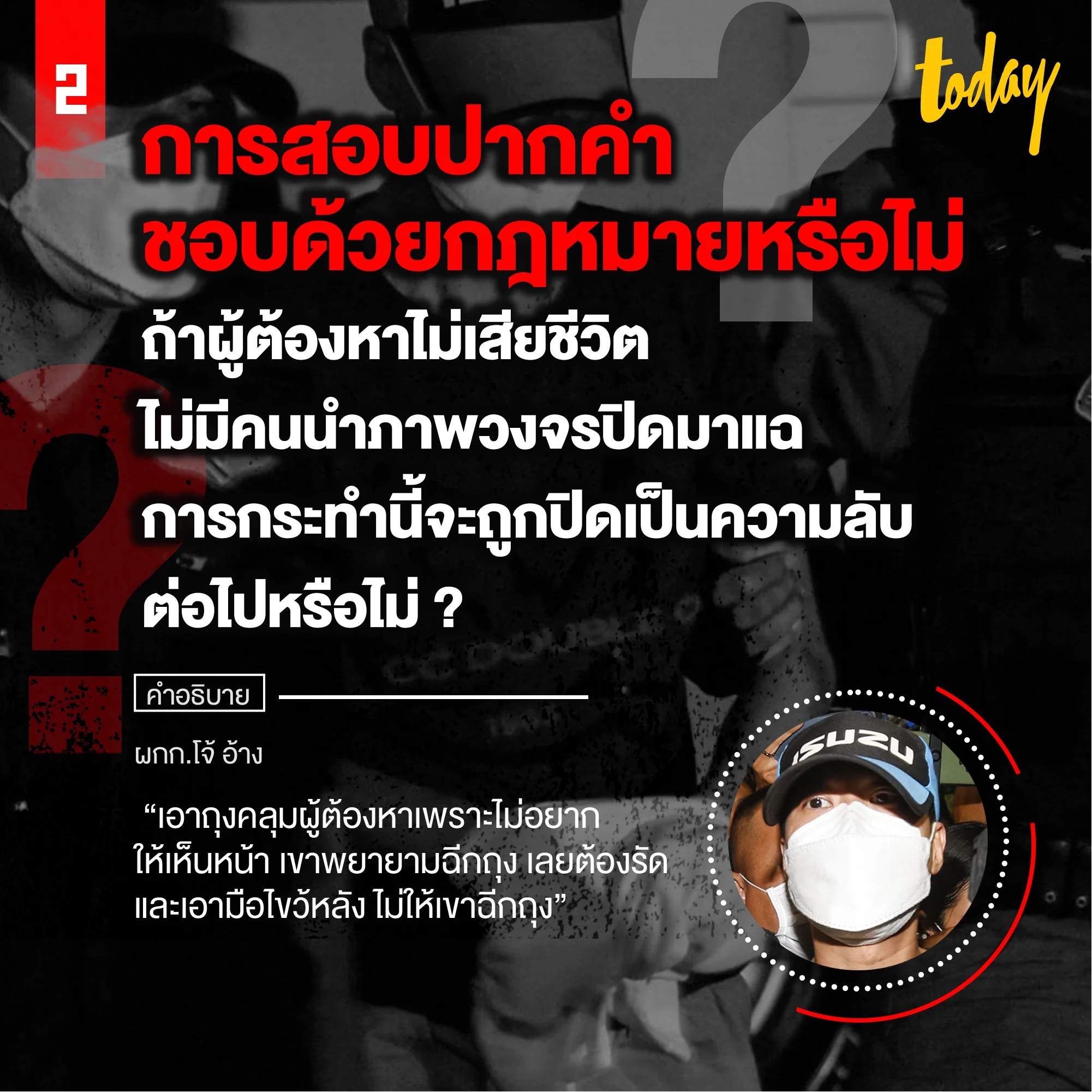 2. การสอบปากคำชอบด้วยกฎหมายหรือไม่ ถ้าผู้ต้องหาไม่เสียชีวิต ไม่มีคนนำภาพวงจรปิดมาแฉ การกระทำนี้จะถูกปิดเป็นความลับต่อไปหรือไม่