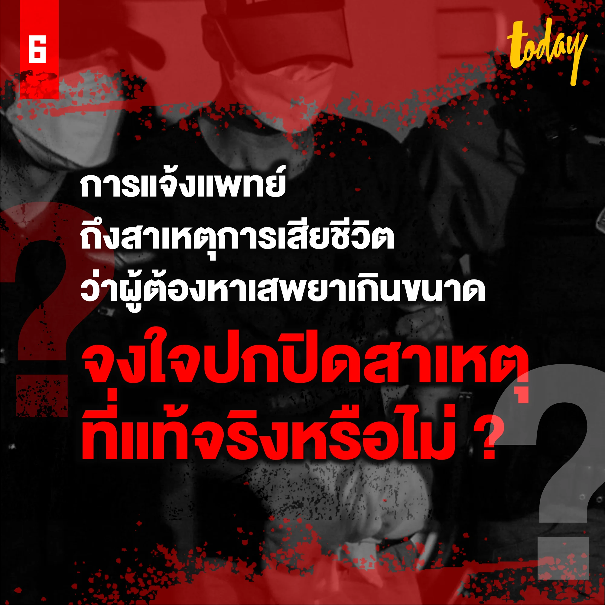 6. การแจ้งแพทย์ถึงสาเหตุการเสียชีวิตว่าผู้ต้องหาเสพยาเกินขนาด จงใจปกปิดสาเหตุที่แท้จริงหรือไม่