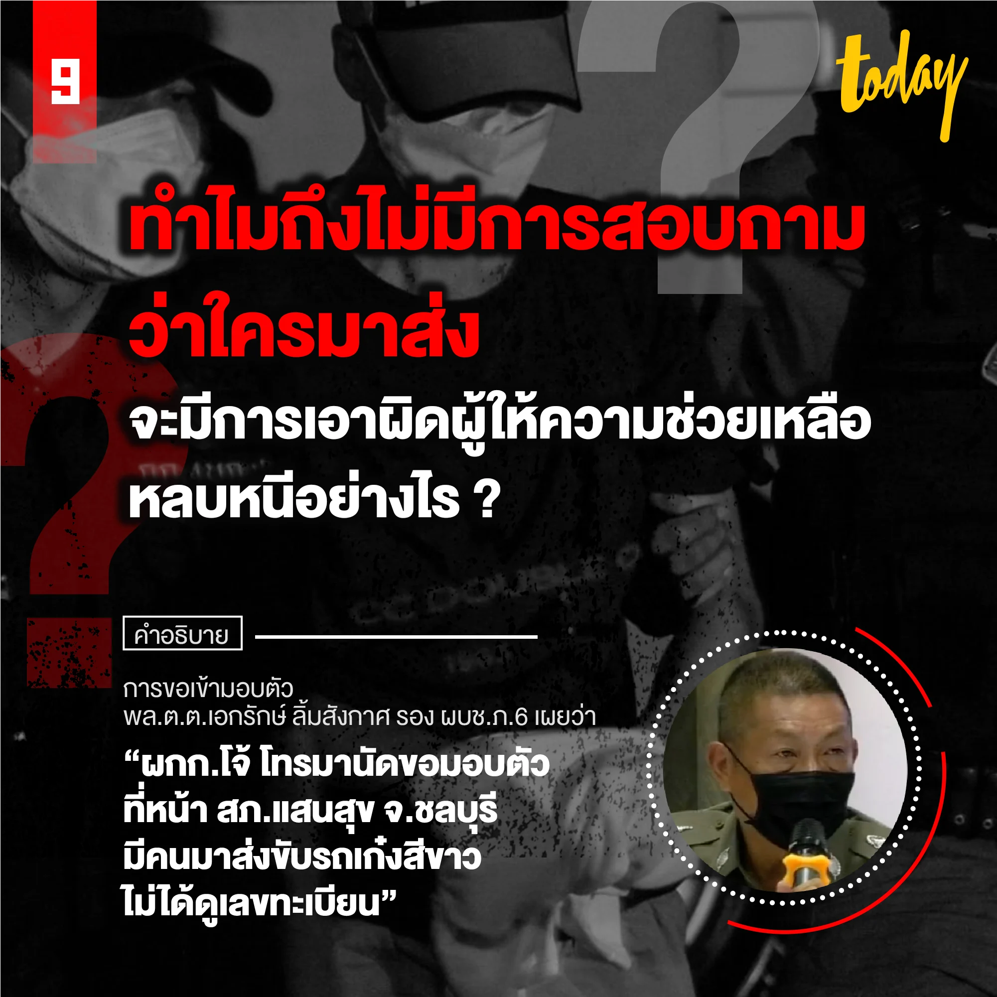 9. ระหว่างการประสานขอมอบตัว ทำไมถึงไม่มีการสอบถามว่าใครมาส่ง จะมีการเอาผิดผู้ให้ความช่วยเหลือหลบหนีอย่างไร