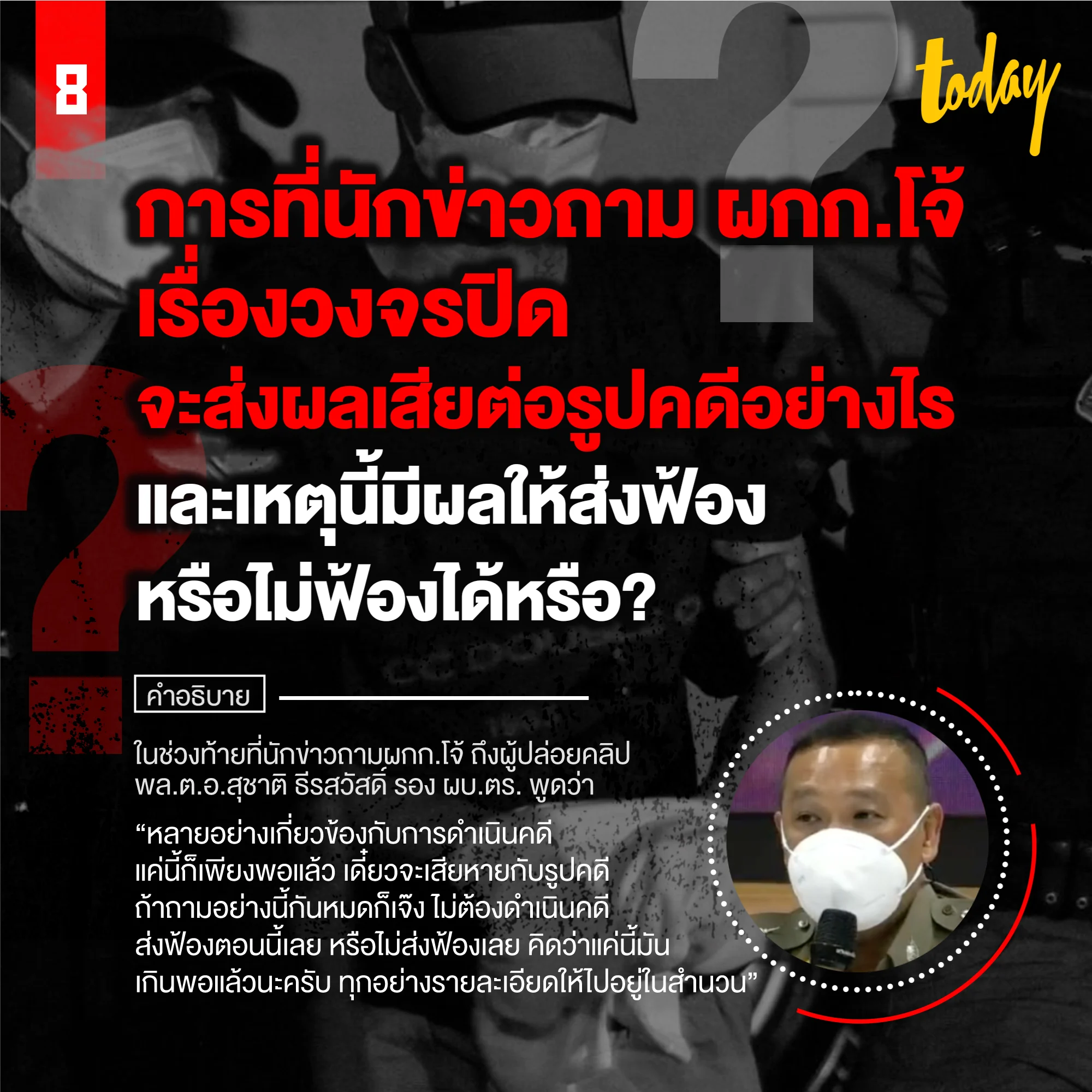 8. การที่นักข่าวถาม ผกก.โจ้ เรื่องวงจรปิด จะส่งผลเสียต่อรูปคดีอย่างไร และเหตุนี้มีผลให้ส่งฟ้องหรือไม่ฟ้องได้หรือ
