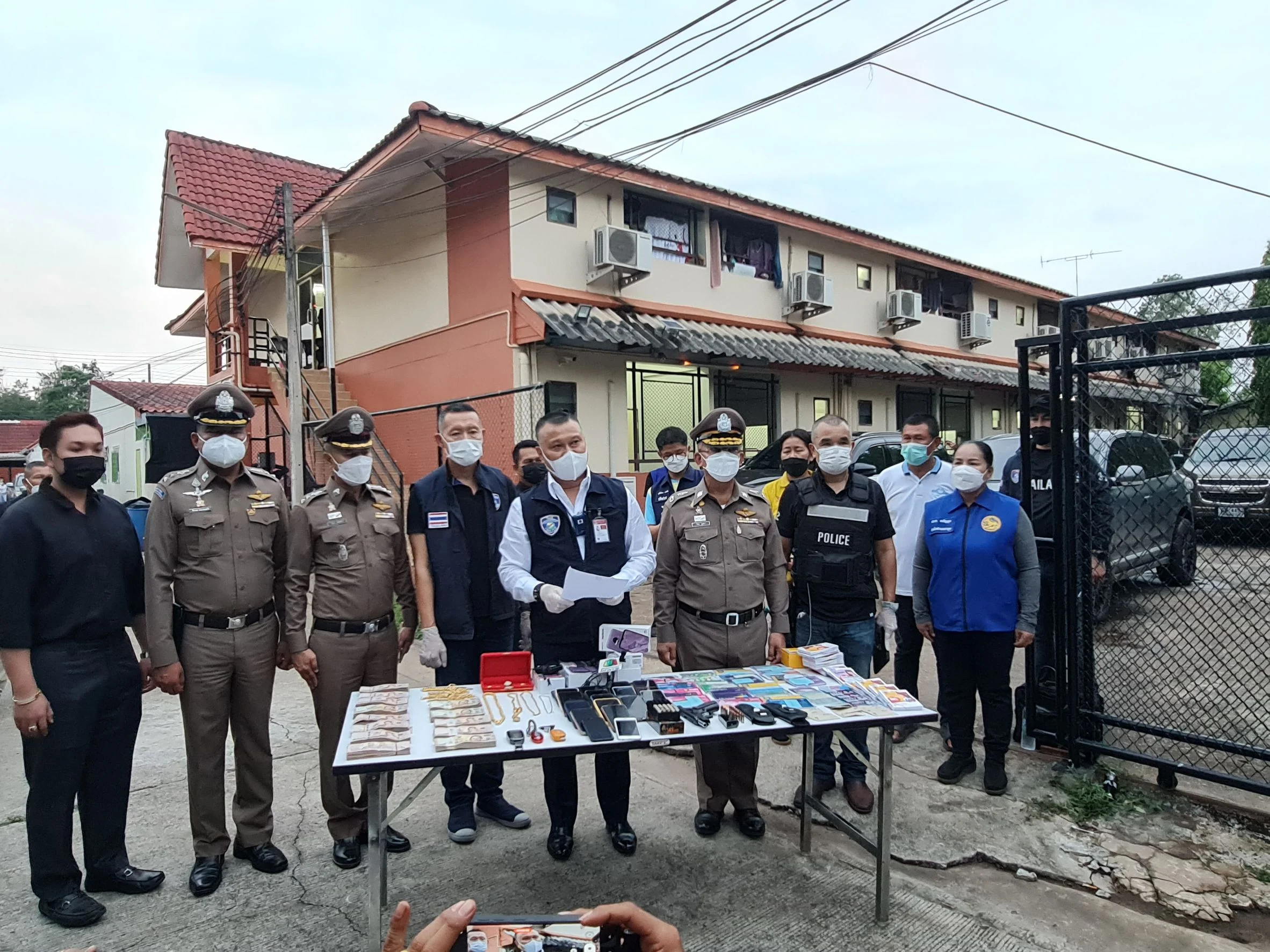 จากการตรวจค้นพบผู้กระทำความผิด 66 คน, เงินสด 1,300,000 บาท, ทองคำ 20 บาท, รถยนต์ 3 คัน, คอมพิวเตอร์ 87 เครื่อง,โทรศัพท์มือถือ 23 เครื่อง, อาวุธปืน ขนาด .45 ยี่ห้อ CZ จำนวน 1 กระบอก, เครื่องกระสุนปืน .45 จำนวน 25 นัด, บัญชีธนาคาร 50 เล่ม ซึ่งพบเงินหมุนเวียนกว่า 200 ล้านบาท