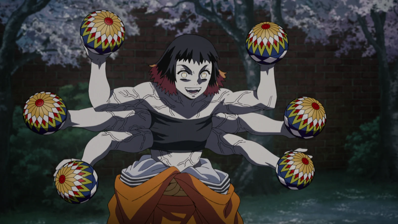 สิ่งที่เราชอบมากที่สุดของแอนิเมชั่นชุดนี้คือการสร้างอสูรที่เป็นตัวร้ายของเรื่อง ที่ความปราถนาของอสูรเมื่อตอนเป็นมนุษย์จะเชื่อมโยงกับความสามารถหรือลักษณะอาวุธของอสูรตัวนั้นๆ อาทิ ในซีรีส์เราจะได้พบกับ ‘เคียวไก’ อสูรที่ต้องการการยอมรับ ประเด็กนี้สื่อผ่านถึงสองชั้นกับการเลือกใช้กลองเป็นอาวุธของของเขา เพราะนอกจากจะเป็นสิ่งที่เชื่อมโยงกับความทรงจำเมื่อยังเป็นมนุษย์แล้ว ยังเป็นเครื่องดนตรีที่เสียงดังและชวนคนให้หันมาสนใจ แม้แต่อารมณ์ที่ซับซ้อนอย่างความโลภในกามารมณ์ การเห็นผู้หญิงเป็นสิ่งของที่มีค่าแค่เพื่อเก็บสะสม การดูถูกผู้หญิง-เห็นว่าผู้หญิงเป็นสิ่งที่มีค่าแค่เพียงความสาวสวย ก็สื่อออกมาครบ จบในม้วนเดียวด้วยอสูรที่ใช้บ่อน้ำดำมืดไร้จุดสิ้นสุดเพื่อกลืนกินชีวิตหญิงสาว และเก็บเอาเครื่องประดับผมไว้เป็นคอลเลคชั่น