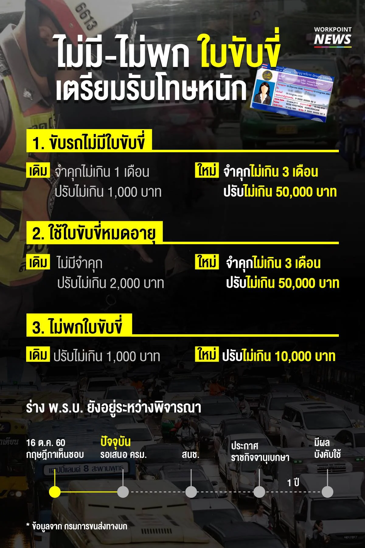 มาตรา 66 ขับรถโดยไม่พกใบอนุญาต กฎหมายเดิมปรับไม่เกิน 1,000 บาท กฎหมายใหม่ปรับสูงสุดไม่เกิ