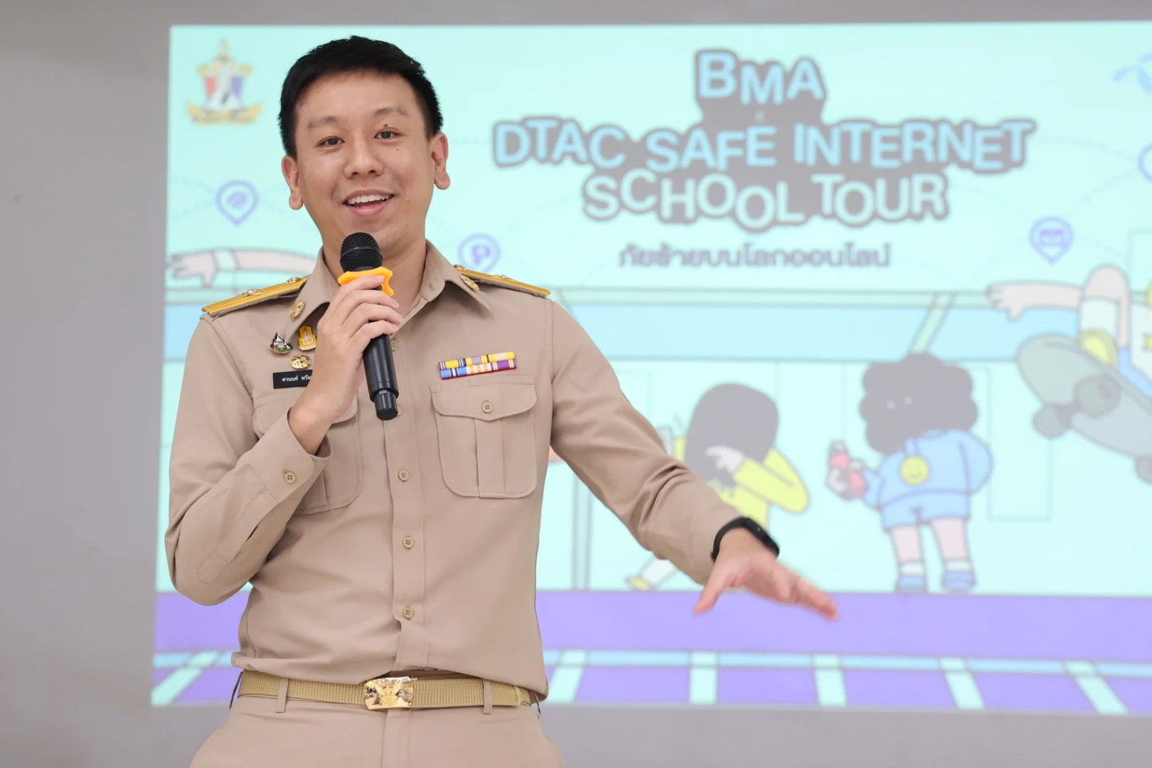 ทางด้าน นายศานนท์ หวังสร้างบุญ รองผู้ว่าราชการกรุงเทพมหานคร กล่าวว่า ปัจจุบันมีโรงเรียนในสังกัด กทม. ทั้งสิ้น 437 โรงเรียน ครอบคลุม 50 เขต นักเรียนทั้งสิ้น 261,160 คน นับตั้งแต่เดือน มิถุนายน 2565 ที่ผ่านมา กรุงเทพมหานครได้ร่วมมือกับ dtac Safe Internet ในการอบรมความรู้ด้านความปลอดภัยในการใช้งานออนไลน์ให้ความรู้แก่เด็กนักเรียนในสังกัดกรุงเทพมหานครอายุระหว่าง 11-13 ปี (ป.5-6) จำนวน 50 โรงเรียน กว่า 10,000 คน ผ่านคาบเรียน “BMA x dtac Safe Internet School Tour” เพื่อให้มีองค์ความรู้และภูมิคุ้มกันต่อภัยการแสวงหาประโยชน์ทางเพศออนไลน์ เข้าใจถึงกระบวนการและสามารถรับมือได้อย่างทันท่วงที