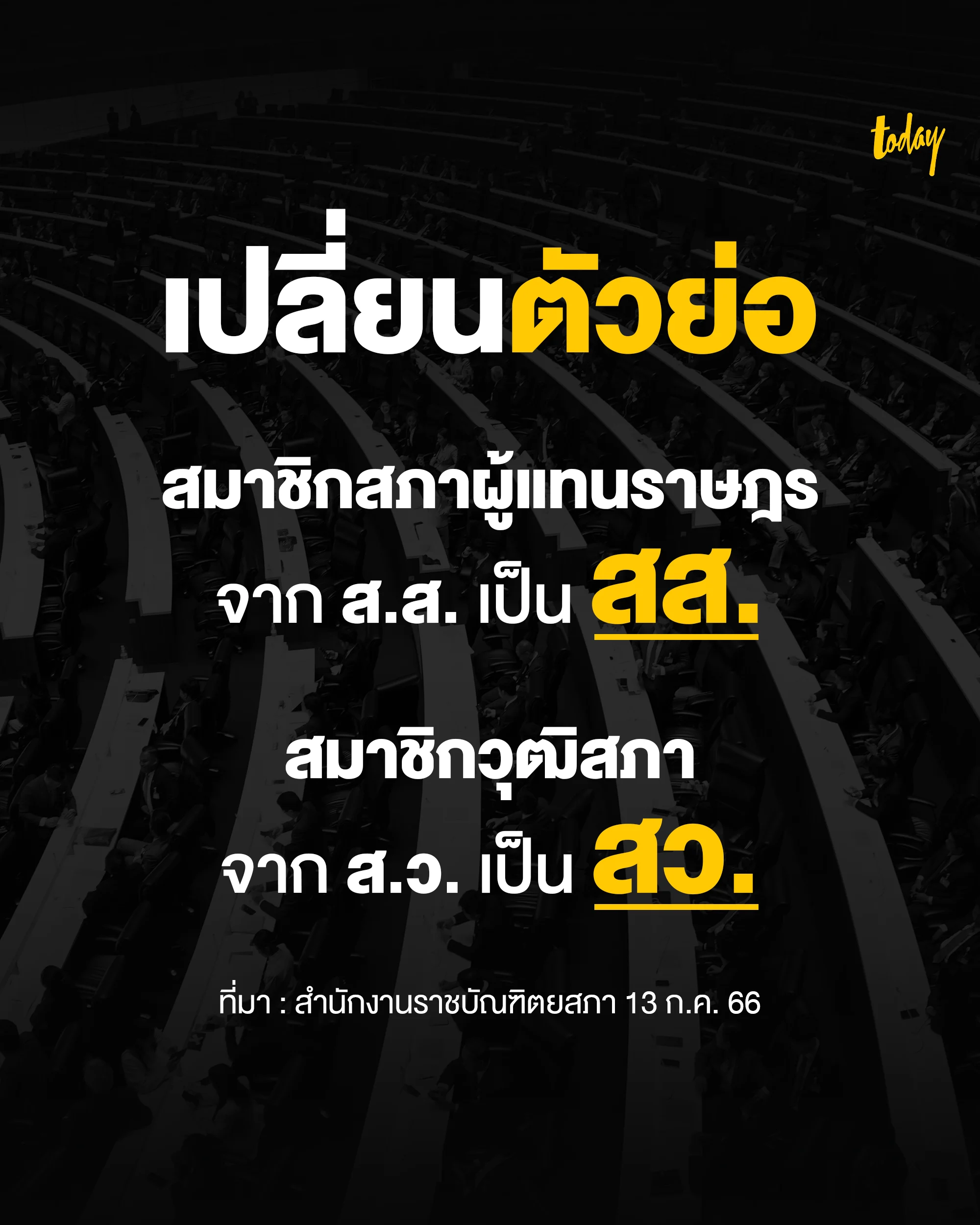 คุ้นชินกันมานาน แต่จากนี้ต้องจำใหม่ กับการใช้ “ตัวย่อ” คำว่า “สมาชิกสภาผู้แทนราษฎร” ที่เคยเป็น ส.ส. และ สมาชิกวุฒิสภา ย่อว่า ส.ว. แต่ล่าสุดทางสำนักงานราชบัณฑิตยสภา ได้ประกาศชี้แจงเหตุผลและให้ใช้คำย่อเป็น สส. และ สว.