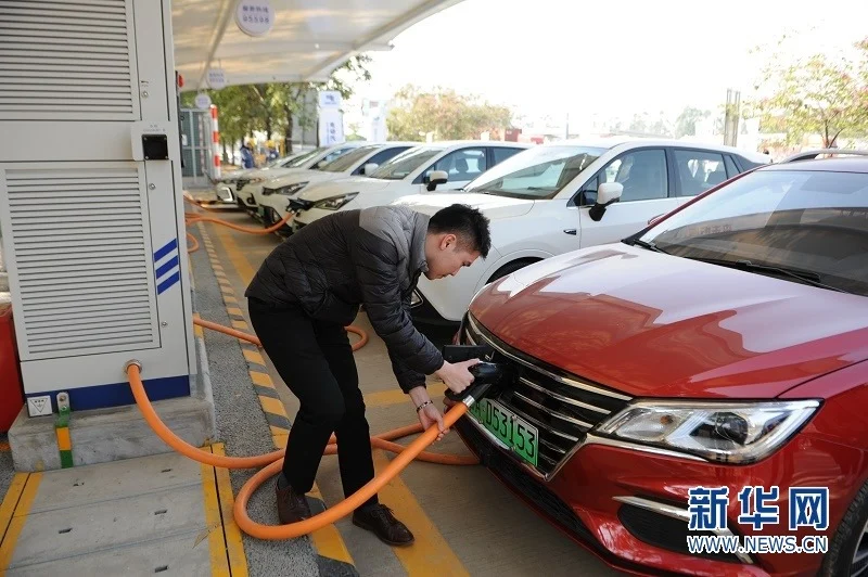 (แฟ้มภาพซินหัว เสาชาร์จยานยนต์พลังงานใหม่ในจีน)