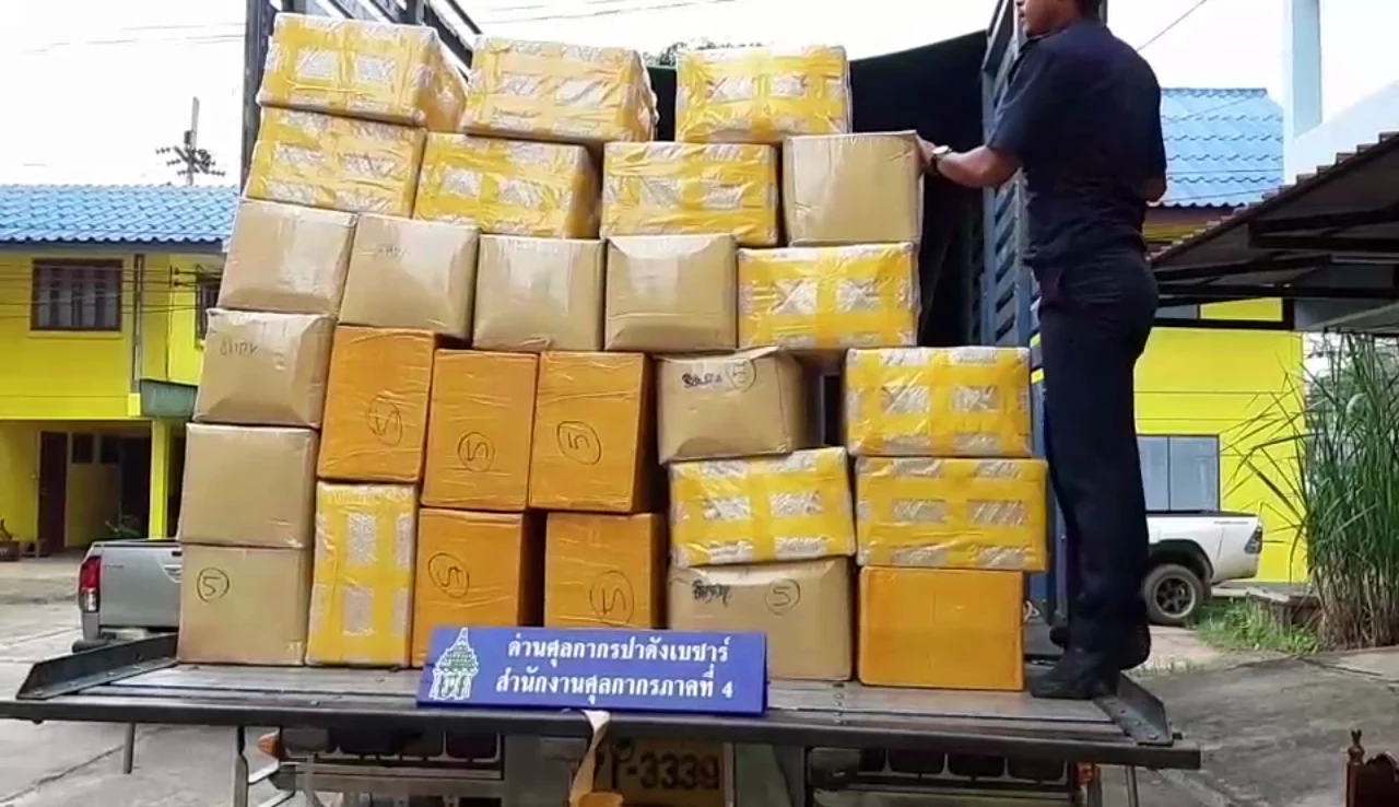 ศุลกากรปาดังเบซาร์ จับกุมหนุ่มใช้บรรทุก 10 ล้อ ขนน้ำยาบุหรี่ไฟฟ้า 46 ลัง มูลค่ากว่า 2 ล้านบาท สารภาพรับจ้างขนส่งนายทุนในหาดใหญ่