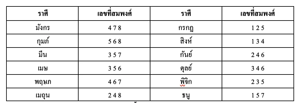 1. เลขมงคลประจำราศีเกิด