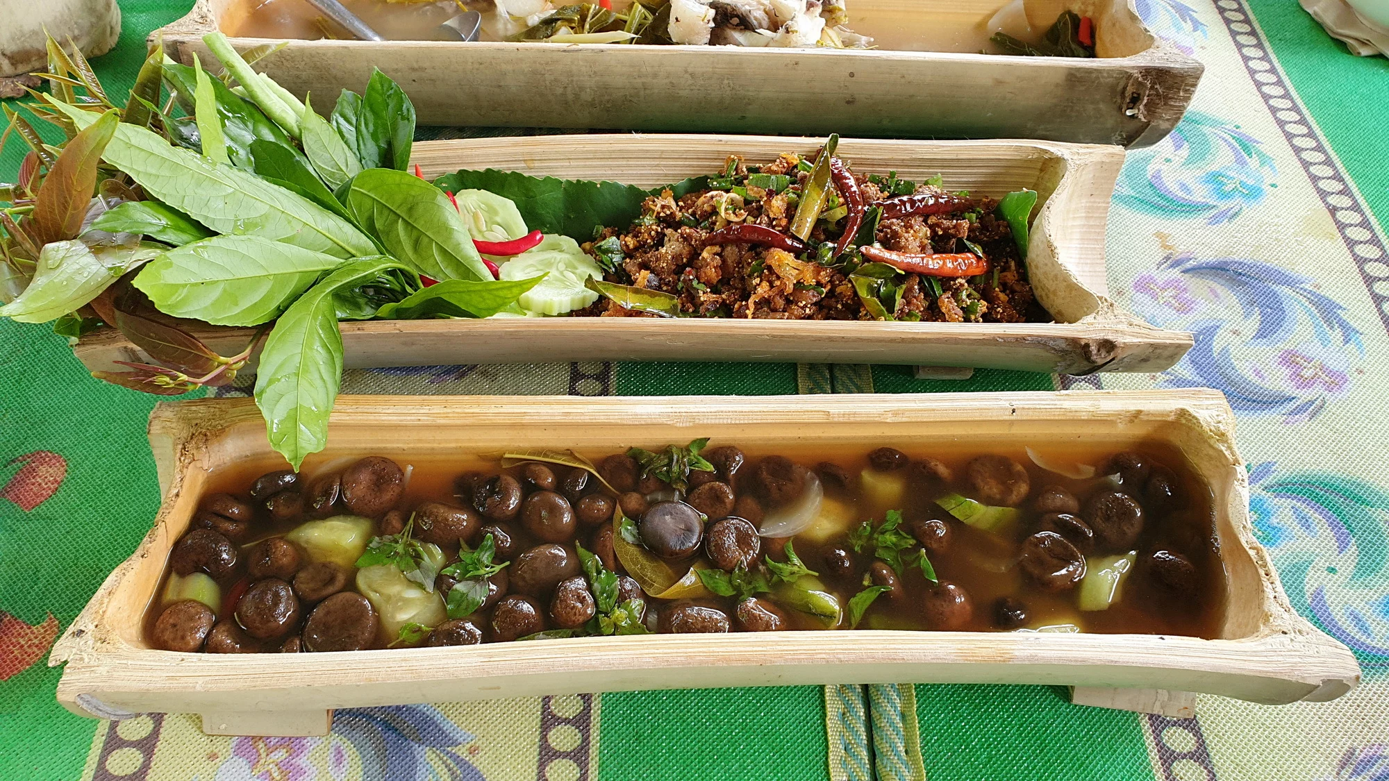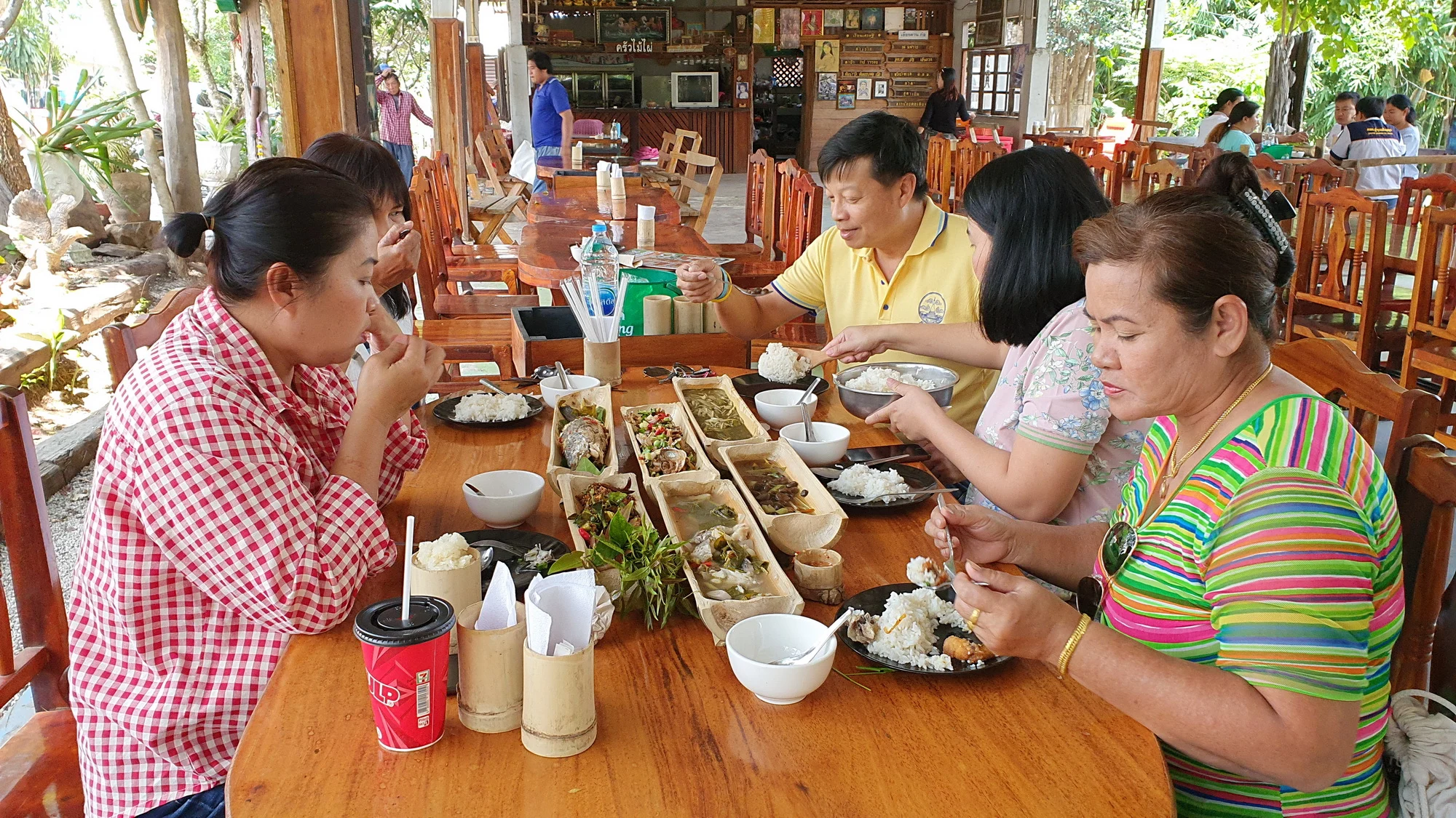 นอกจากจะใช้ไม่ไผ่ใส่อาหาร ยังนำไปใส่ข้าวเหนียว กระบอกน้ำดื่ม กระบอกไม้จิ้มฟัน และอื่นๆ ซึ่งมีร้านเดียวในจังหวัดเลย อีกทั้งรสชาติอาหารที่นี้อร่อย บรรยากาศร่มรื่นตามธรรมชาติ สวนภาชนะกระบอกไม้ไผ่ ก็สามารถนำกลับมาใช้ได้ใหม่ โดยนำไปต้มในน้ำเดือด นำมาล้างอีกครั้งแล้วไปตากแดด โดยใช้สังกะสีครอบทับเพื่อให้ความร้อนเผาและอบให้แห้งสนิท เชื้อราจะไม่ขึ้น และทางร้านให้ความสำคัญเรื่องความสะอาดของกระบอกไม้ไผ่ และวัสดุอื่นๆ ที่ทำจากกระบอกไม้ไผ่ ต้องสะอาด และไม่มีเชื้อราแน่นอน