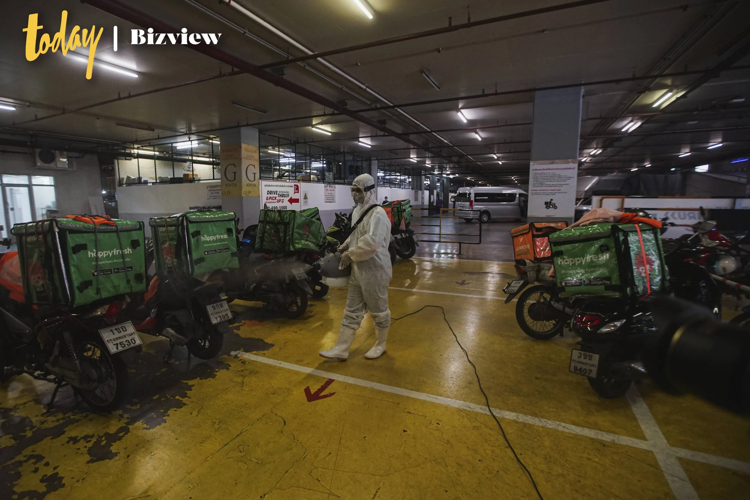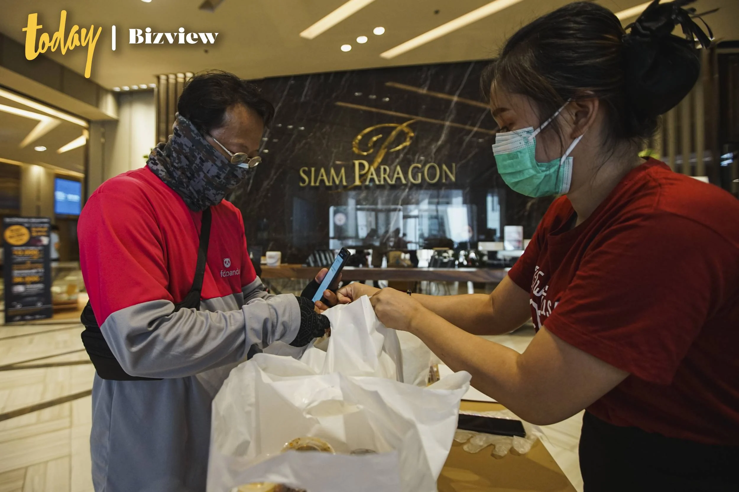 ซึ่งมีไรเดอร์จากฟู้ดเดลิเวอรี่ค่ายต่างๆ ทั้ง Line Man, Grab Food, True Food และ Robinhood มานั่งรอรับอาหาร ภายในโซนพิเศษ ที่ทางศูนย์การค้าได้จัดไว้เพื่อรองรับไรเดอร์ ที่จะมารับอาหารโดยเฉพาะ