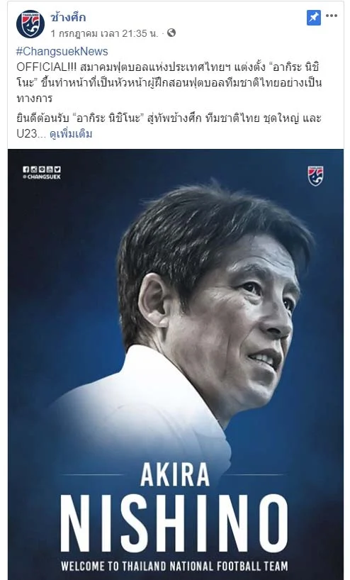 นิชิโนะ: ข่าวเรื่องโค้ชทีมชาติไทย นั้นไม่ตรงกับความเป็นจริง