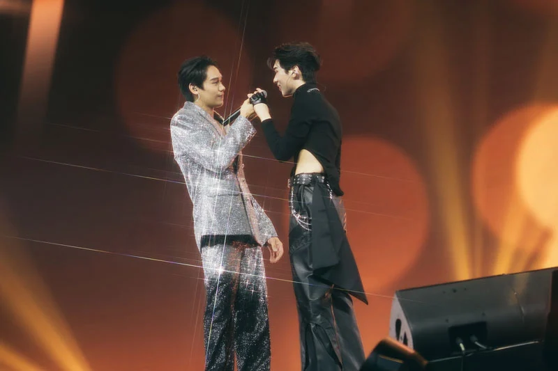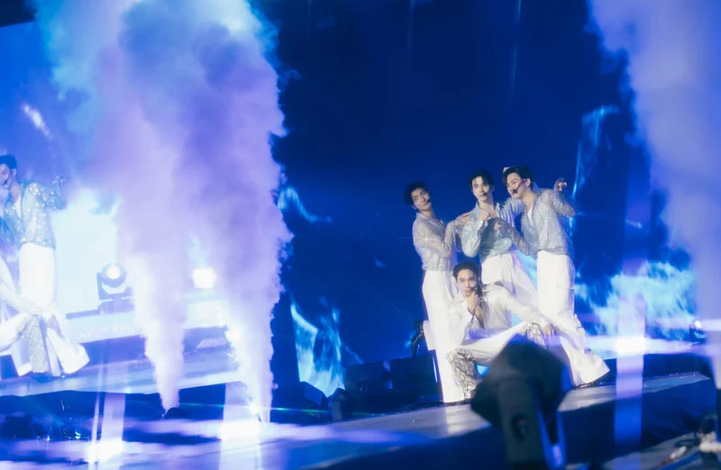 ยังไม่หมดเพียงเท่านี้หลังจากเสิร์ฟแบบโซโล่ไปแล้ว ถึงคราวเสิร์ฟแบบกลุ่มกันบ้าง เริ่มกันที่แก๊งจิ๋ว “เอิร์ธ-บาส-ต้นหลิว-โอ๊ต” มาในลุกส์ All Black เท่แต่แฝงไปด้วยความลึกลับ เซ็กซี่ ชวนมาทำให้เวทีลุกเป็นไฟกับเพลง “Fire” จากนั้นเติมไฟให้เวทีฮอตมากขึ้นกว่าเดิมกับแก๊งพี่พระเอก “ปอนด์-แม็กกี้-บีเวอร์-เงิน” ในชุดระยิบระยับโชว์เสน่ห์แพรวพราวขี้เล่นขยี้ใจกับเพลง “Fire Boy” บอกได้คำเดียวว่าอะไรที่ไม่เคยได้เห็นก็ได้เห็นกันที่เวทีนี้! ตัดความร้อนแรงบนเวทีกับอีกหนึ่งคู่พิเศษ “ไทเกอร์-เดือนหนาว” ซึ่ง “พาย-กอล์ฟ” มาในเพลง “รอยยิ้ม” จับมือร่วมกันทำให้บรรยากาศในฮอลล์นี้กลายเป็นสีชมพูขึ้นมาในทันตา!