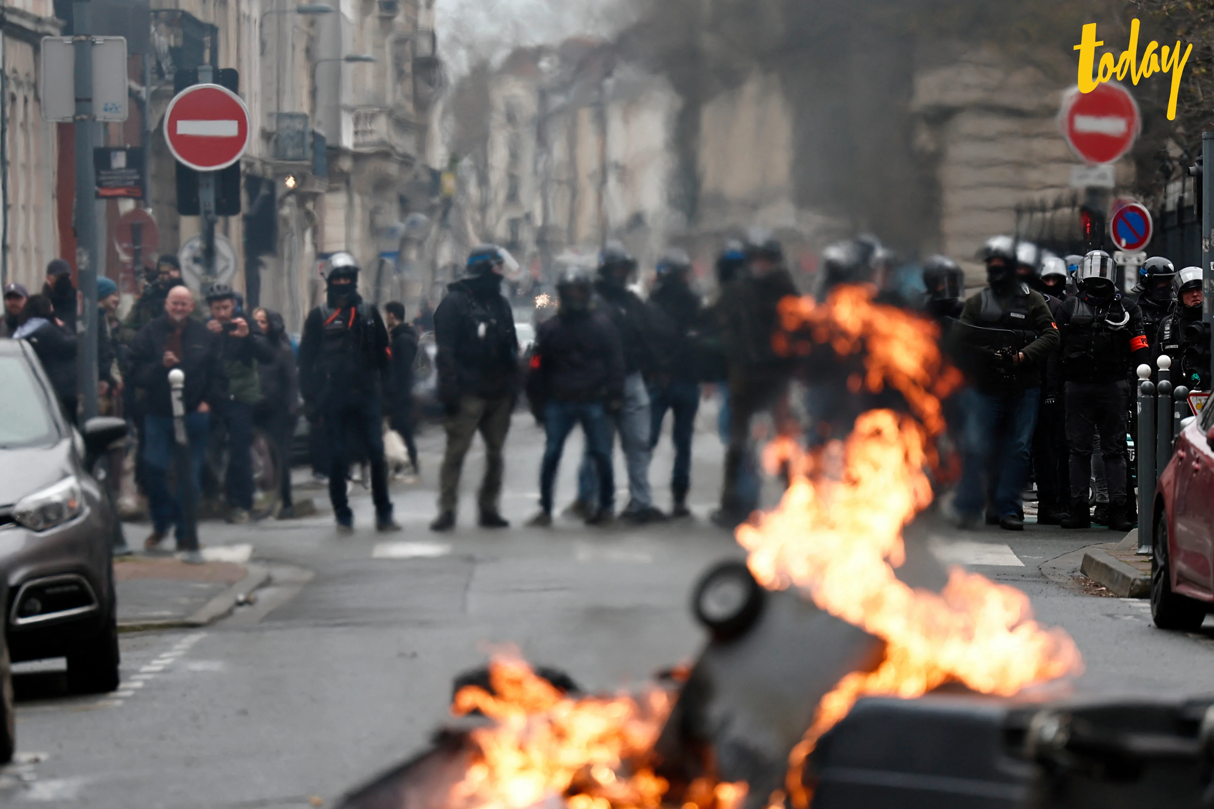 - มีการปะทะระหว่างผู้ชุมนุมกับตำรวจควบคุมฝูงชน ผู้ชุมนุมบางส่วนเริ่มจุดไฟเผาสถานที่ราชการ ทุบทำลายอาคารห้างร้าน และสาธารณูปโภค ขณะเจ้าหน้าที่ยิงแก๊สน้ำตาเพื่อสลายการชุมนุม นับเป็นเหตุการณ์ประท้วงรุนแรงครั้งเลวร้ายสุดในรอบหลายปีในฝรั่งเศส