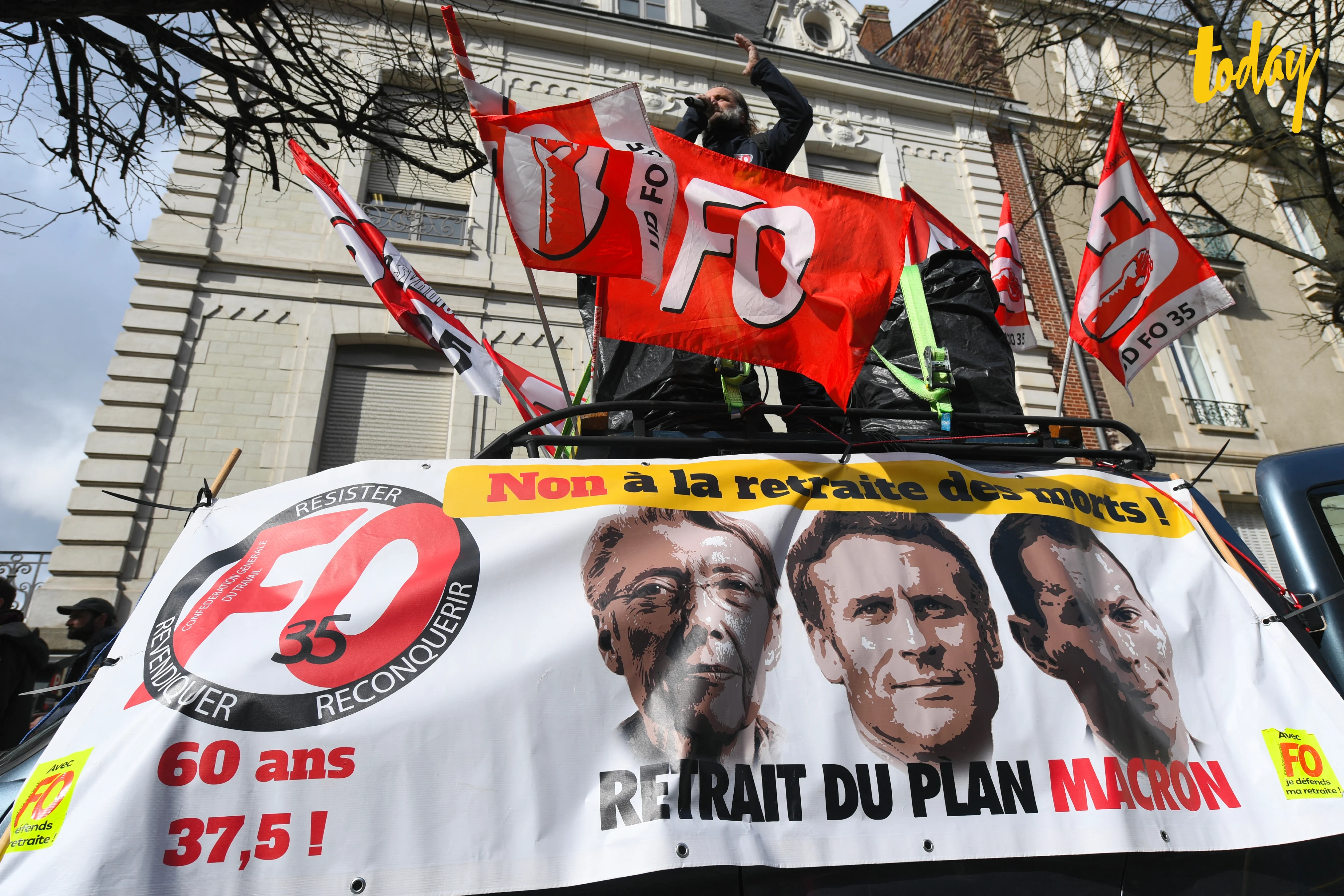 - แต่แผนการนี้ บังคับให้คนวัยทำงานต้องจ่ายเงินสมทบเพิ่มขึ้นจาก 41 ปี มาเป็น 43 ปี เพื่อให้ได้รับเงินบำนาญเต็มจำนวน จึงสร้างความไม่พอใจให้กับลูกจ้างและสหภาพแรงงาน