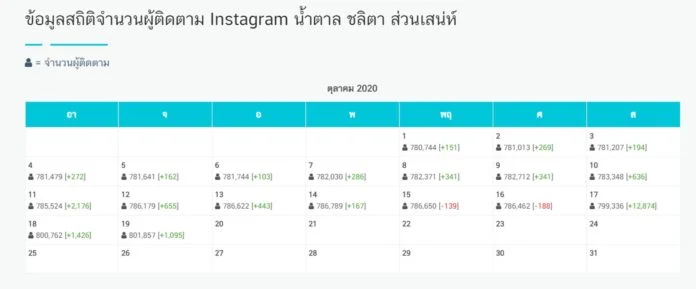 น้ำตาล ชลิตา ส่วนเสน่ห์ (@namtanlitaa) มิสไทยแลนด์ยูนิเวิร์สประจำปี 2016 ออกมาโพสต์สนับสนุนการชุมนุมของม็อบวันที่ 17-18 ตุลาคม รณรงค์ไม่สนับสนุนการใช้ความรุนแรงทุกรูปแบบรวมทั้งเรียกร้องให้ปล่อยตัวแกนนำ ซึ่งถ้านับตั้งแต่วันที่ลงโพสต์สนับสนุนม็อบวันที่17 ตุลาคม เธอมียอดผู้ติดตามเพิ่ม 1 หมื่น 2 พันบัญชี