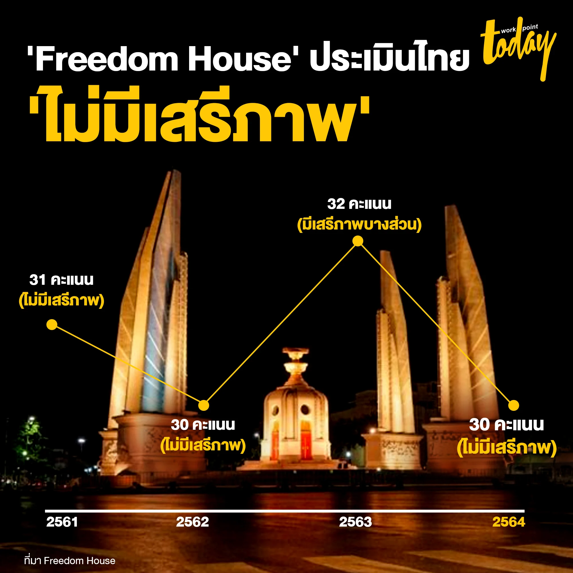 สถานการณ์เสรีภาพของไทยในมุมมองของ ‘Freedom House’ เป็นอย่างไร ทำไมปีนี้ไทยถึงตกชั้นอยู่ในระดับไม่มีเสรีภาพ วันนี้ workpointTODAY จะสรุปให้อ่านกัน
