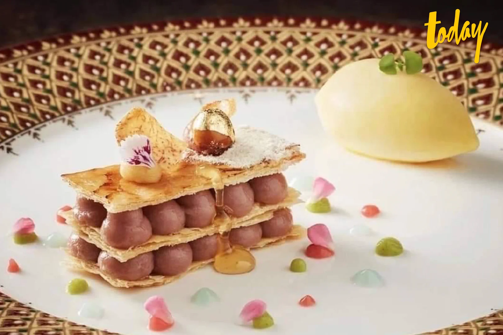– Dessert (ของหวาน) ขนมหม้อแกงเผือกภูเขาและเม็ดบัวซอสผลไม้ไทย เสิร์ฟพร้อมกับซอร์เบท์เสาวรส น้ำผึ้งดอกลำไย และ ขนม 5 อย่าง (ดาราทอง, ช็อคโกแลตไทยเชียงใหม่ไส้บรั่นดีไทยกระชายดำ, ขนมมะลิไส้มะพร้าว, มาการองลิ้นจี่, ขนมเปียกปูนใบเตย ) และผลไม้ไทย เสิร์ฟคู่กับชาเฟลอ ดู นอร์ท จากเมืองเหนือ หรือ ยอดกาแฟเมืองน่าน