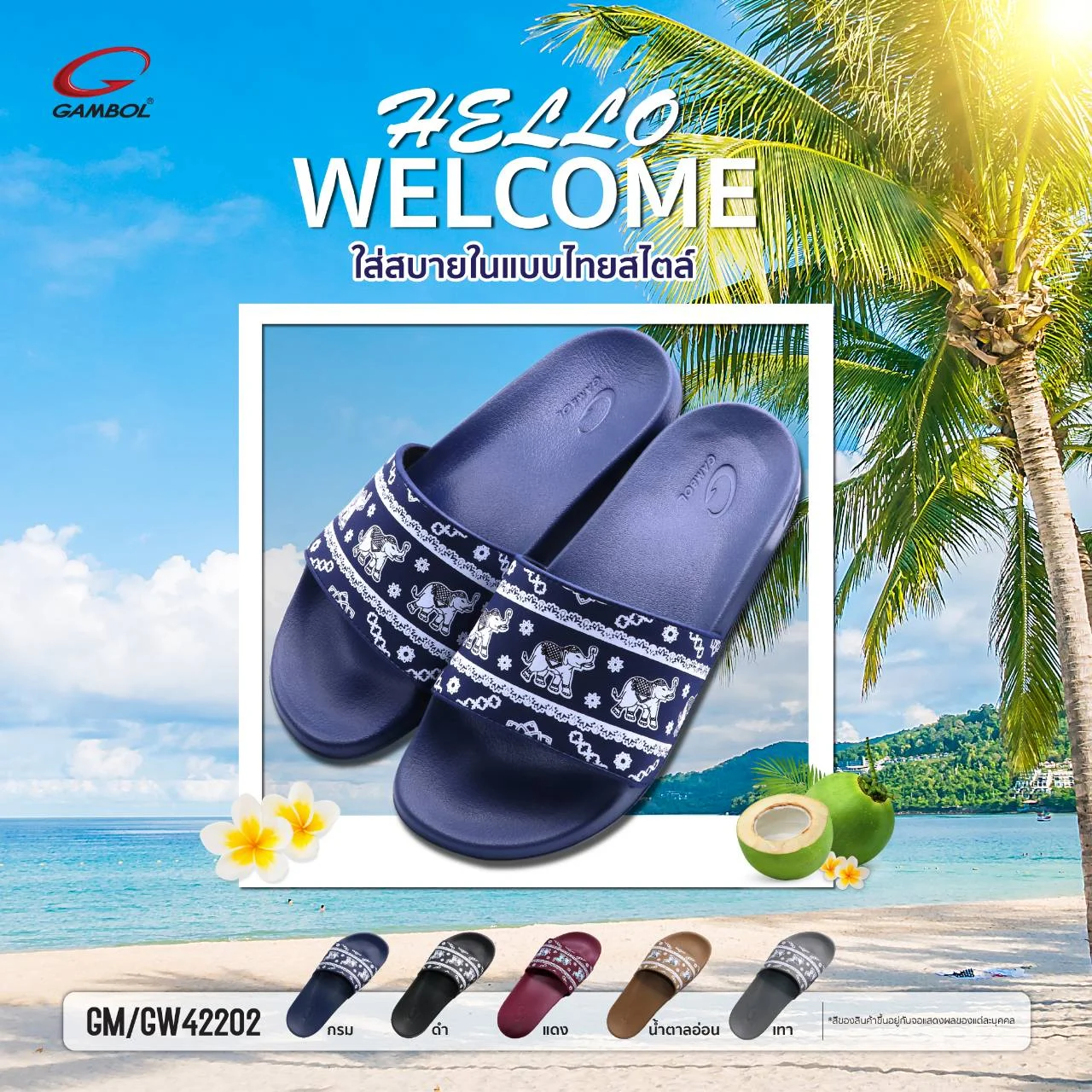 ไม่ตกแถวตกขบวน สำหรับ แกมโบล (GAMBOL) ผู้ผลิตและจัดจำหน่ายรองเท้าลำลองแบรนด์ชั้นนำของไทย ล่าสุดส่งอีก 1 ไอเทมฮอตมารับลมร้อน กับรองเท้าแตะช้าง Limited edition รุ่น GM/GW 42202 ลวดลาย ดีไซน์ เป็นเอกลักษณ์เฉพาะตัว ตามแบบไทยสไตล์ มาพร้อมกับ 2 นวัตกรรมสุดล้ำเน้นสวมใส่สบาย แห้งไว ไม่อับชื้น พร้อมวางจำหน่ายแล้ววันนี้