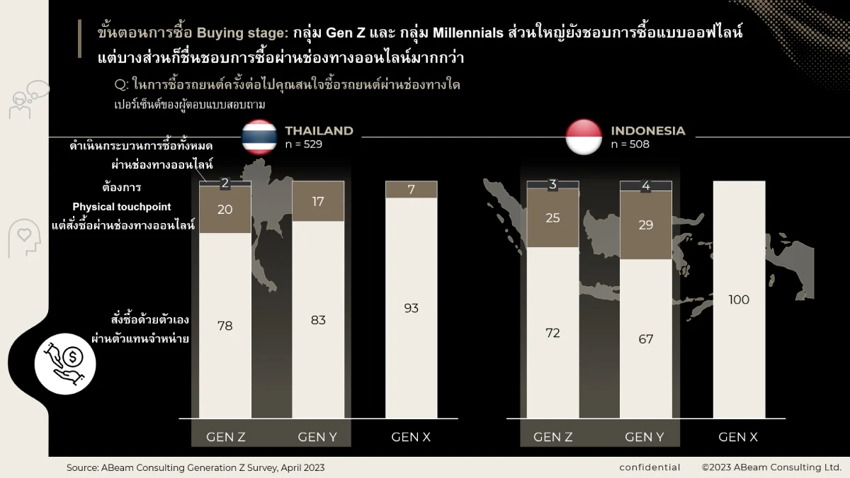 ที่น่าประหลาดใจก็คือ แม้ Gen Z จะเป็นกลุ่มคนที่คุ้นเคยและเชี่ยวชาญการใช้งานช่องทางดิจิทัล ผู้ซื้อในกลุ่ม Gen Z จำนวนไม่น้อยที่มีมากถึง 78% ยังชอบการซื้อรถด้วยวิธีการออฟไลน์มากกว่า