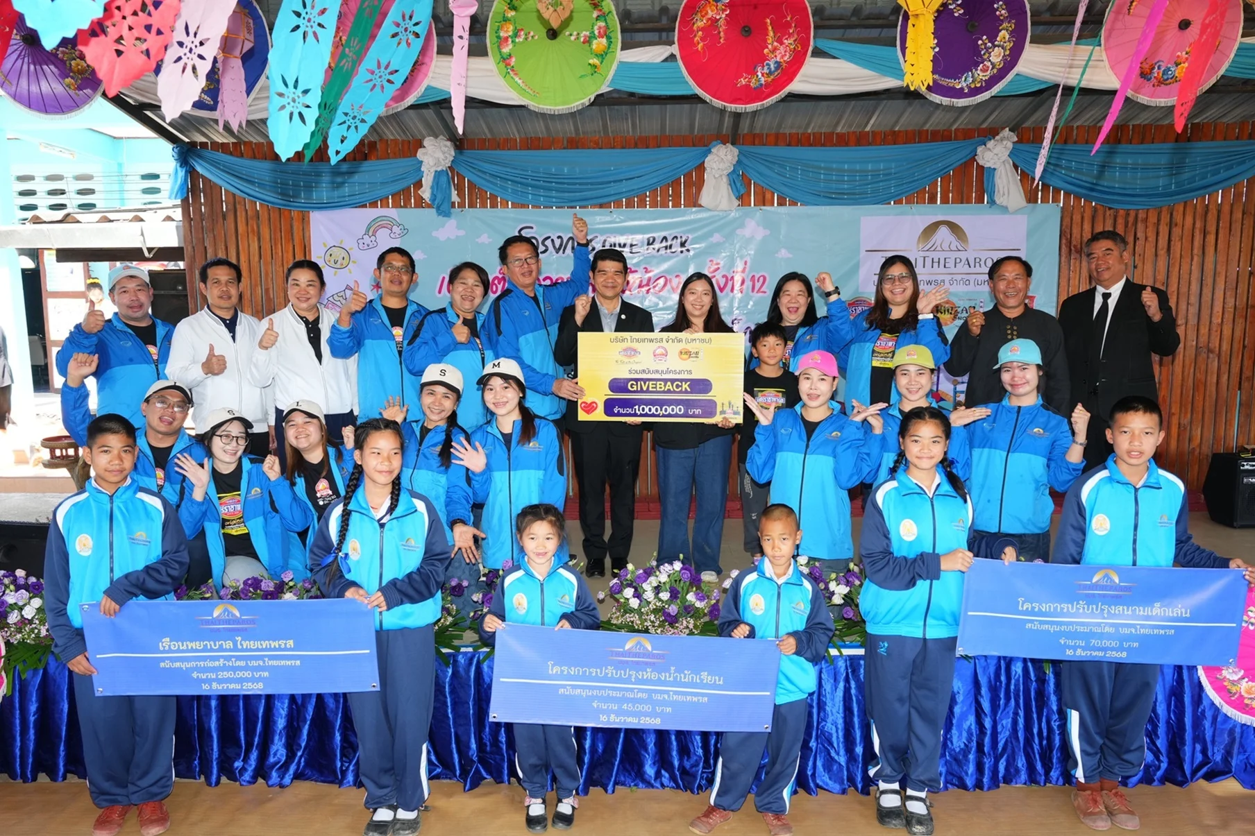 บริษัท ไทยเทพรส จำกัด (มหาชน) ผู้นำผลิตซอสปรุงรสภูเขาทองและซอสพริกศรีราชาพานิช เดินหน้าสานต่อภารกิจสร้างคุณค่าทางสังคมผ่านโครงการ GIVEBACK เติมเต็มความสุขให้น้อง ครั้งที่ 12 สะท้อนบทบาทแบรนด์ไทยที่เติบโตคู่สังคม