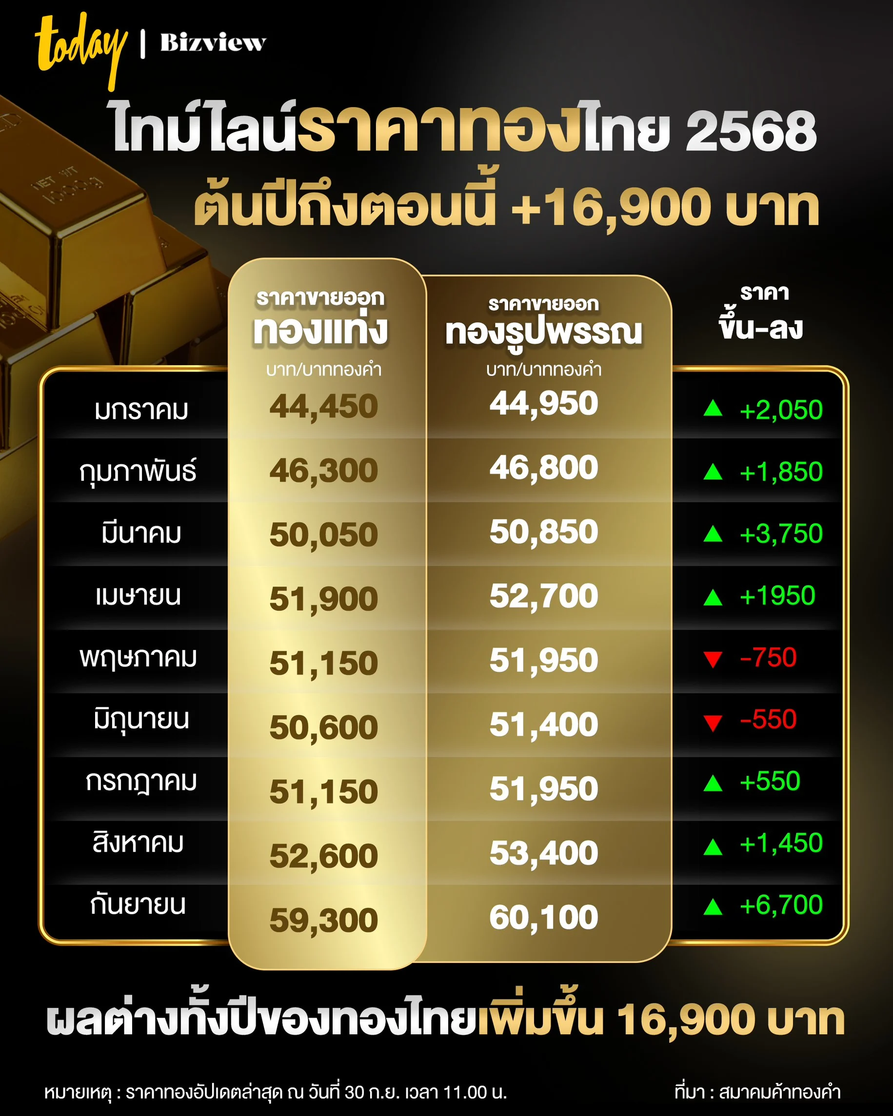 TODAY Bizview ชวนย้อนดูไทม์ไลน์ราคาทองคำตั้งแต่ต้นปี 2568