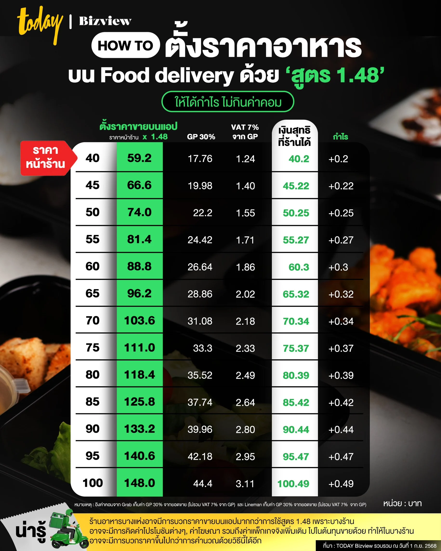 TODAY Bizview ชวนดูวิธีตั้งราคาบนแอปฟู้ดเดลิเวอรี่ด้วยสูตร 1.48