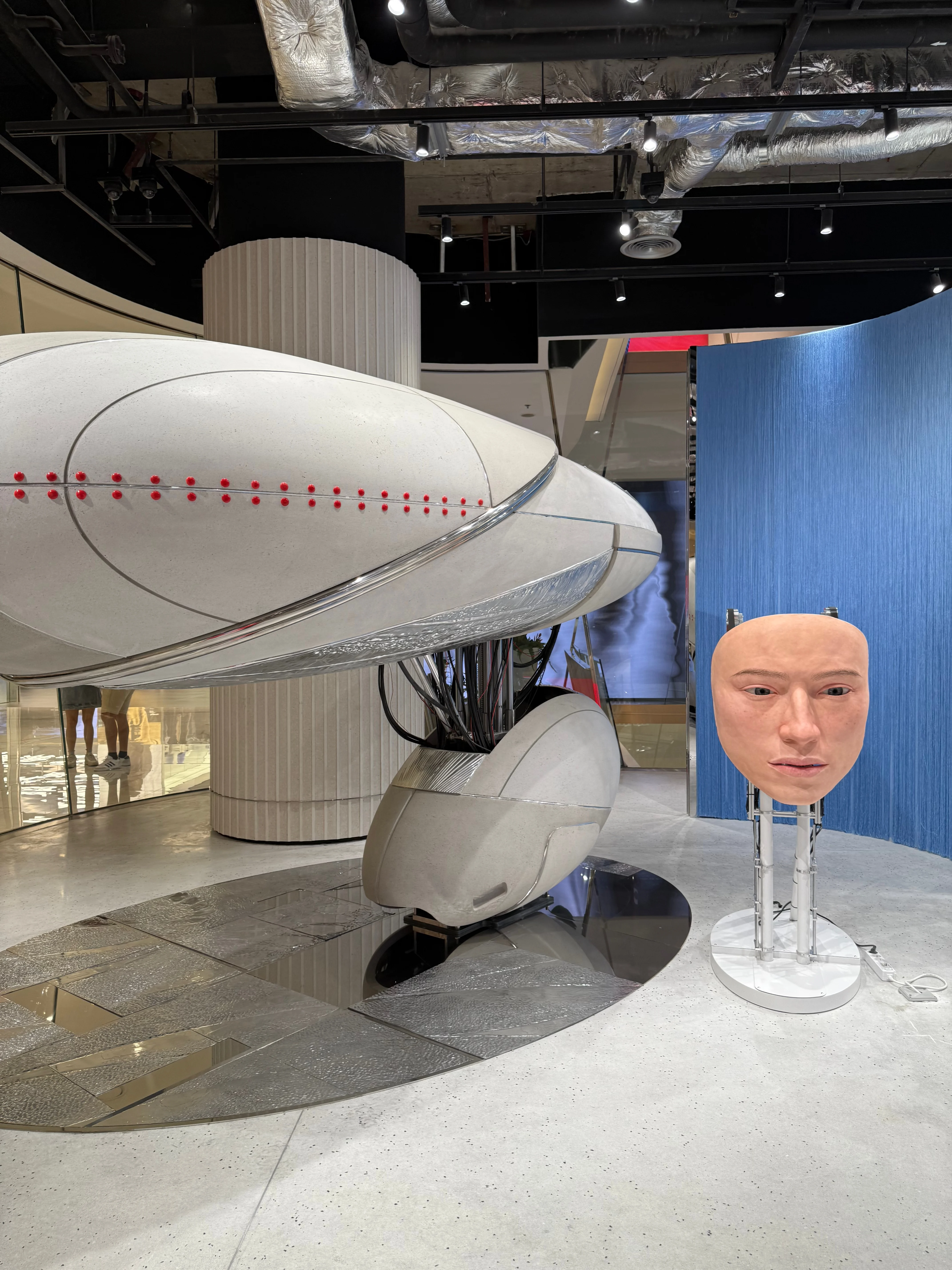 ส่วนการตกแต่งส่วนอื่นๆ ภายในร้าน ได้นำเอา Art Installation ขนาดใหญ่หลายชิ้นมาติดตั้ง เช่น หุ่นยนต์รูปใบหน้าขยับได้ หุ่นผู้ชายขนาดยักษ์ที่กำลังนั่งอยู่ในร้าน จอ LED แสดงภาพเคลื่อนไหว หรือจะเป็นการจัดแสดงวัสดุโค้งมนรูปร่างประหลาดที่ต้องอาศัยการตีความตามจินตนาการ พร้อมการติดตั้งแสง สี เสียง ซึ่งผสานบรรยากาศออกมาได้สุดล้ำ เหมือนหลุดไปอยู่ในโลกอนาคต
