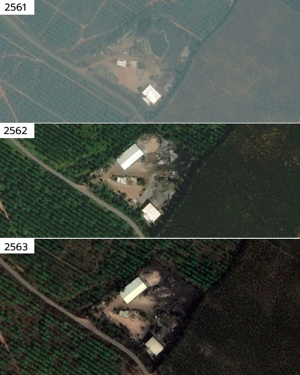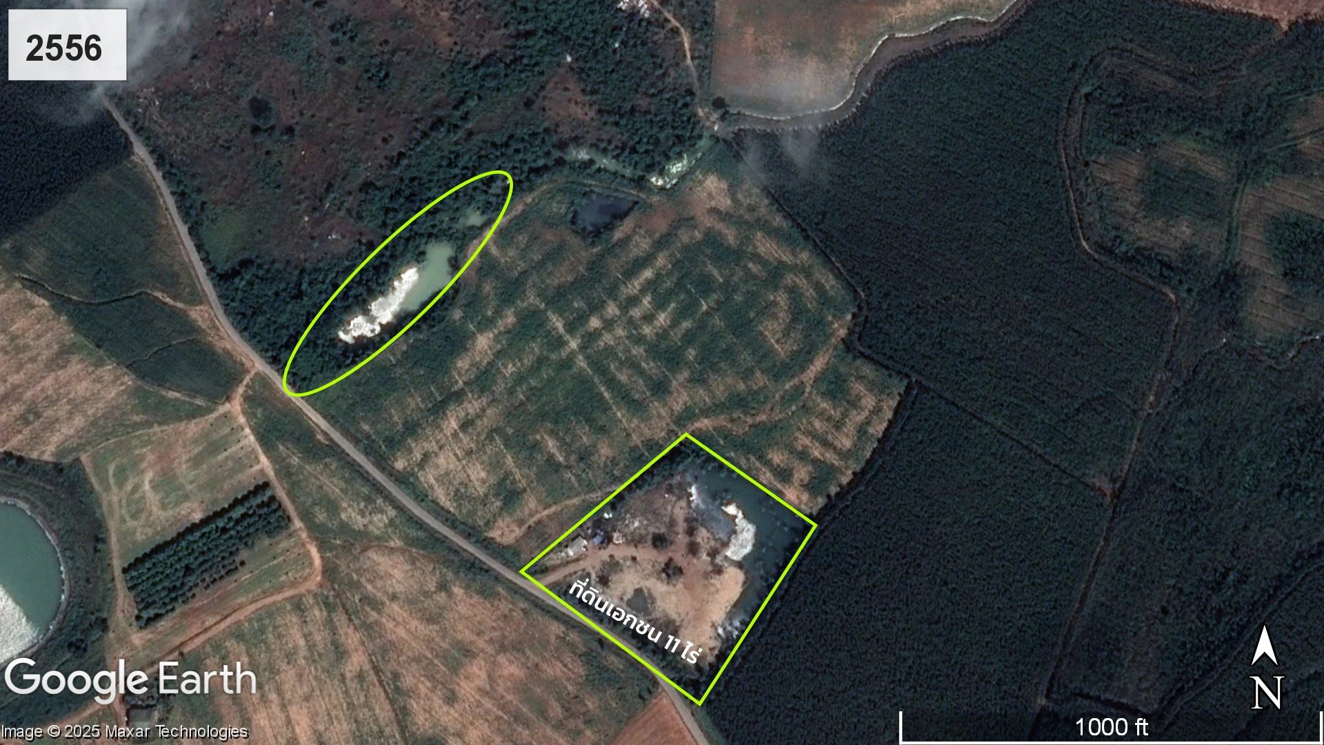 เป็นที่น่าเสียดายอีกเช่นกันว่า ในช่วงปี 2566-2567 ไม่มีภาพถ่ายของ Google Earth บันทึกพื้นที่แปลงดังกล่าวไว้ ทำให้ไม่สามารถเห็นความเปลี่ยนแปลงที่เกิดขึ้น หลังเกิดประเด็นรับรู้ในวงกว้าง จึงไม่รู้ถึงสภาพพื้นที่ได้เปลี่ยนแปลงไป มีเพียงภาพในปี 2568 ที่เห็นว่า ที่ดินเป็นที่ว่างทั้ง 11 ไร่ ไม่มีอาคาร หรือ ‘ของ’ ใดๆ กองเหนือผืนดินแล้ว