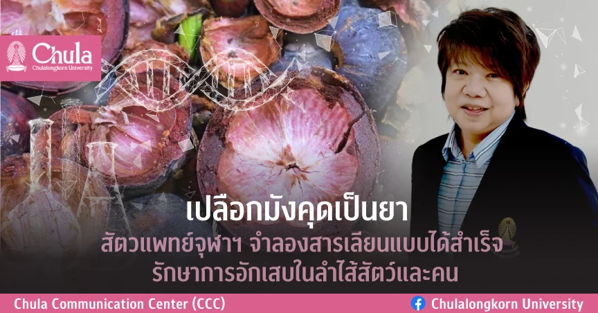 สัตวแพทย์ จุฬาฯ วิเคราะห์และจำลอง ‘ไฮดรอกซี่แซนโทน’ พัฒนาเลียนแบบสารสำคัญจากเปลือกมังคุด ที่มีฤทธิ์ต้านอนุมูลอิสระ กำจัดเชื้อโรคและยับยั้งการอักเสบเยื่อบุลำไส้ เล็งต่อยอดผลิตภัณฑ์เพื่อสุขภาพสัตว์และคนในอนาคต