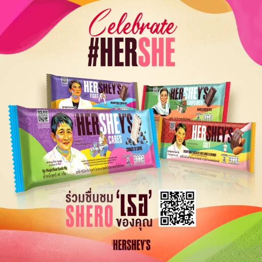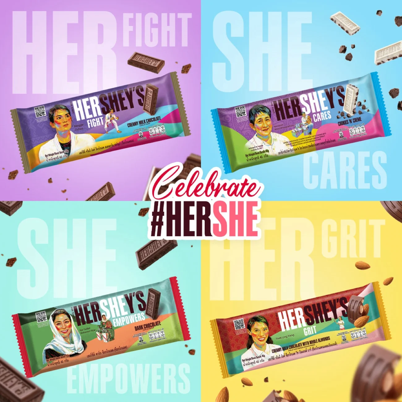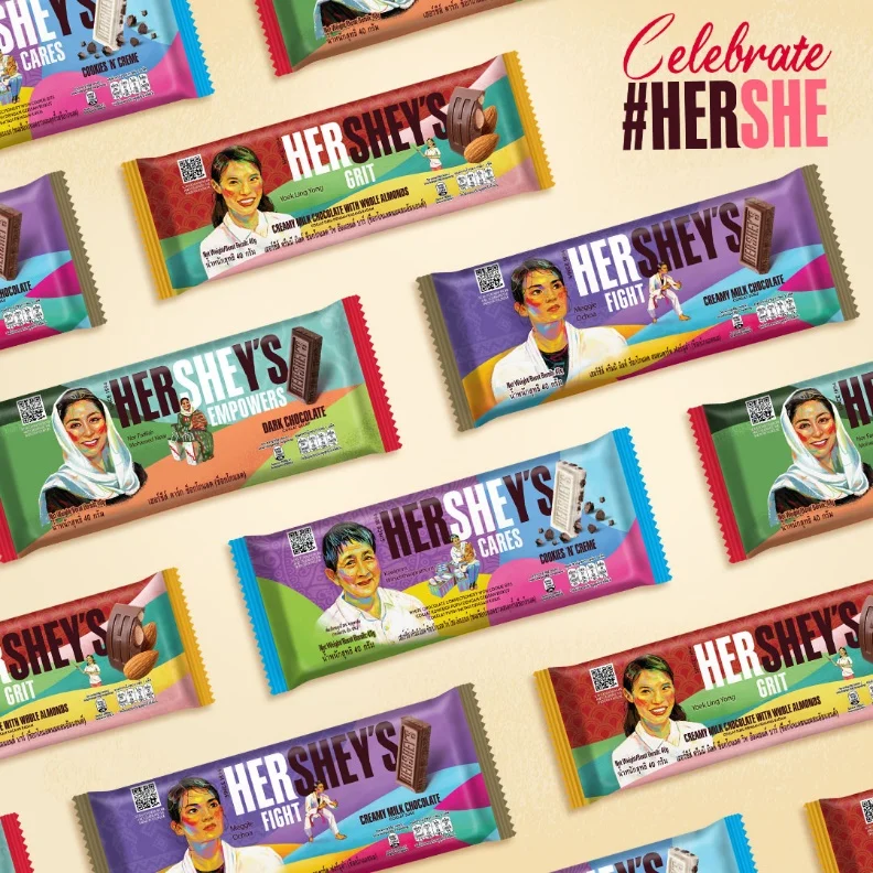 ที่ผ่านมา ผู้เขียนเห็นแคมเปญสนับสนุนผู้หญิงมานับครั้งไม่ถ้วน แต่หนึ่งในแคมเปญที่อดพูดถึงไม่ได้เลยก็คือ #HerShe จาก Hershey’s (เฮอร์ชีส์) แบรนด์ช็อกโกแลตระดับโลก ที่เข้ามามีส่วนร่วมในการสนับสนุนพลังสตรีด้วยเช่นกัน เพราะได้เปลี่ยนแพ็กเกจช็อกโกแลตแบบเดิมๆ ให้กลายเป็นพื้นที่ชื่นชมผู้หญิง ซึ่งสร้างสิ่งดีๆ ให้สังคม ในรูปแบบของแพ็กเกจแบบลิมิเต็ด อิดิชัน ที่สกรีนรูปภาพของผู้หญิงเหล่านั้นลงไปในเดือนแห่งวันสตรีสากล