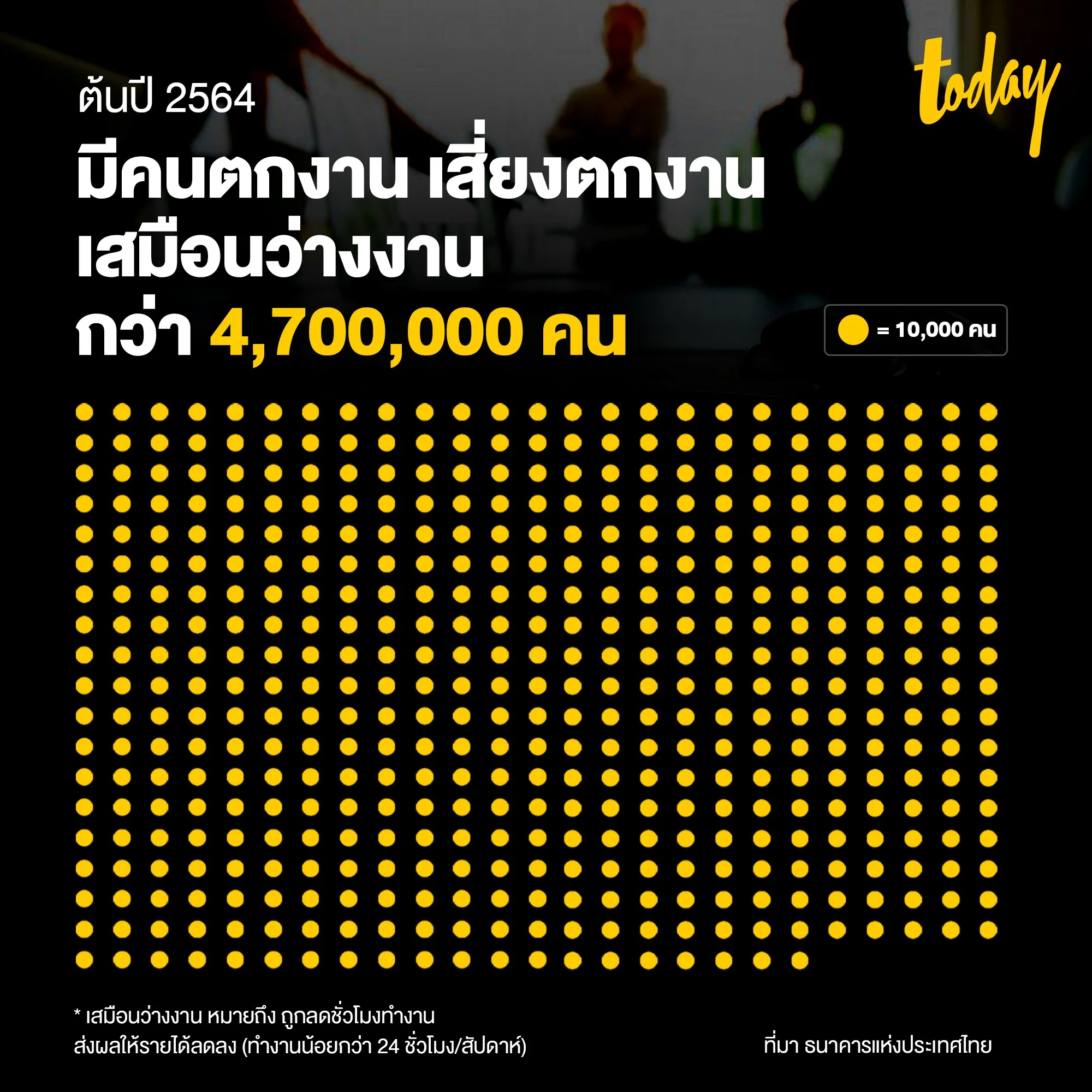 หมายเหตุ : เสมือนว่างงาน หมายถึง ถูกลดชั่วโมงทำงาน ส่งผลให้รายได้ลดลง (ทำงานน้อยกว่า 24 ชั่วโมง/สัปดาห์)