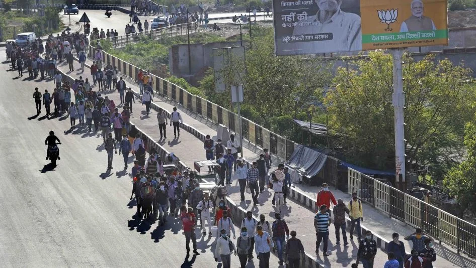 ในช่วงสุดสัปดาห์ที่ผ่านมา แรงงานอพยพหลายหมื่นคน จากจำนวนทั้งหมดราว 46 ล้านคนในอินเดีย ต้องเร่งเดินทางกลับบ้านในชนบท และในขณะที่บริการขนส่งเช่นรถไฟ ยุติการให้บริการ พวกเขาไม่มีทางเลือกอื่นนอกจากการเดินเป็นระยะทางหลายร้อยกิโลเมตร