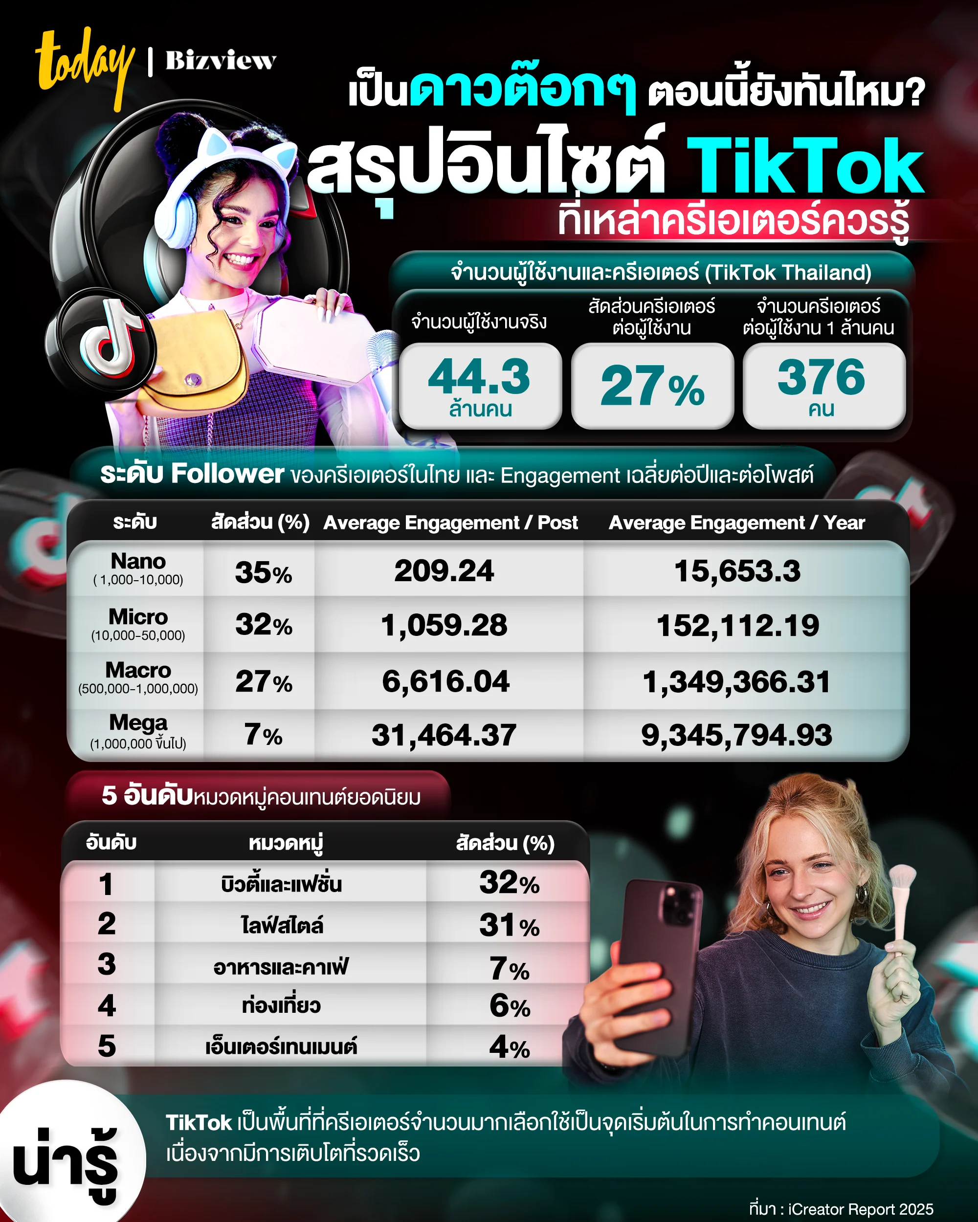 การเติบโตของครีเอเตอร์บน TikTok ยังสะท้อนด้วยว่า แพลตฟอร์มนี้เป็นจุดเริ่มต้นสำคัญ สำหรับใครที่อยากสร้างชื่อเสียงหรือสร้างอาชีพด้านคอนเทนต์