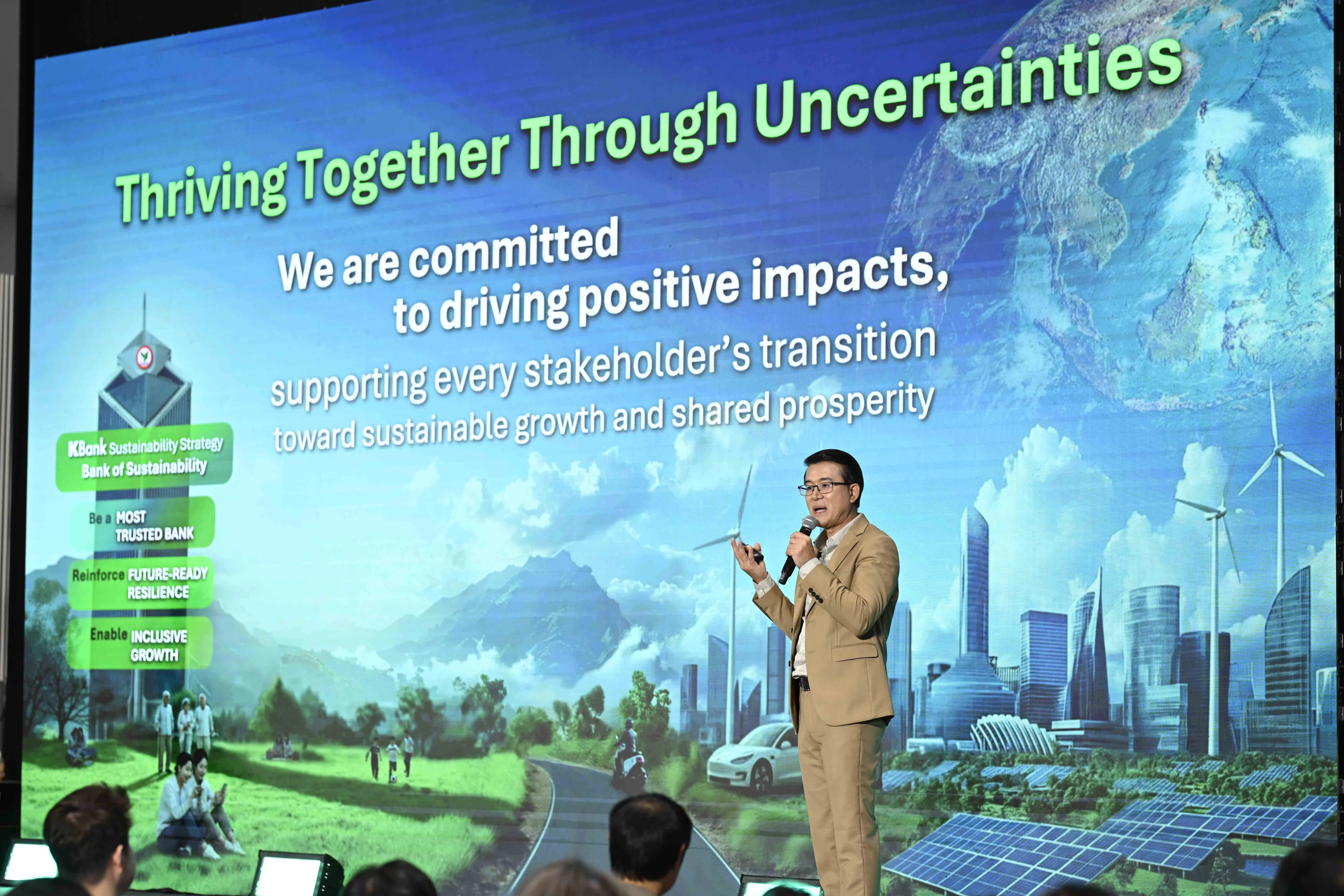 ท่ามกลางความท้าทายนี้ ธนาคารกสิกรไทย (KBank) มองบทบาทตนเองไม่ใช่เพียง “ตัวกลางทางการเงิน” แต่เป็นพาร์ตเนอร์ที่ช่วยให้ลูกค้า นักลงทุน ผู้ประกอบการ และทุกคนในสังคม สามารถเข้าถึงโอกาสใหม่ ปรับตัว และเติบโตได้อย่างยั่งยืนไปด้วยกัน