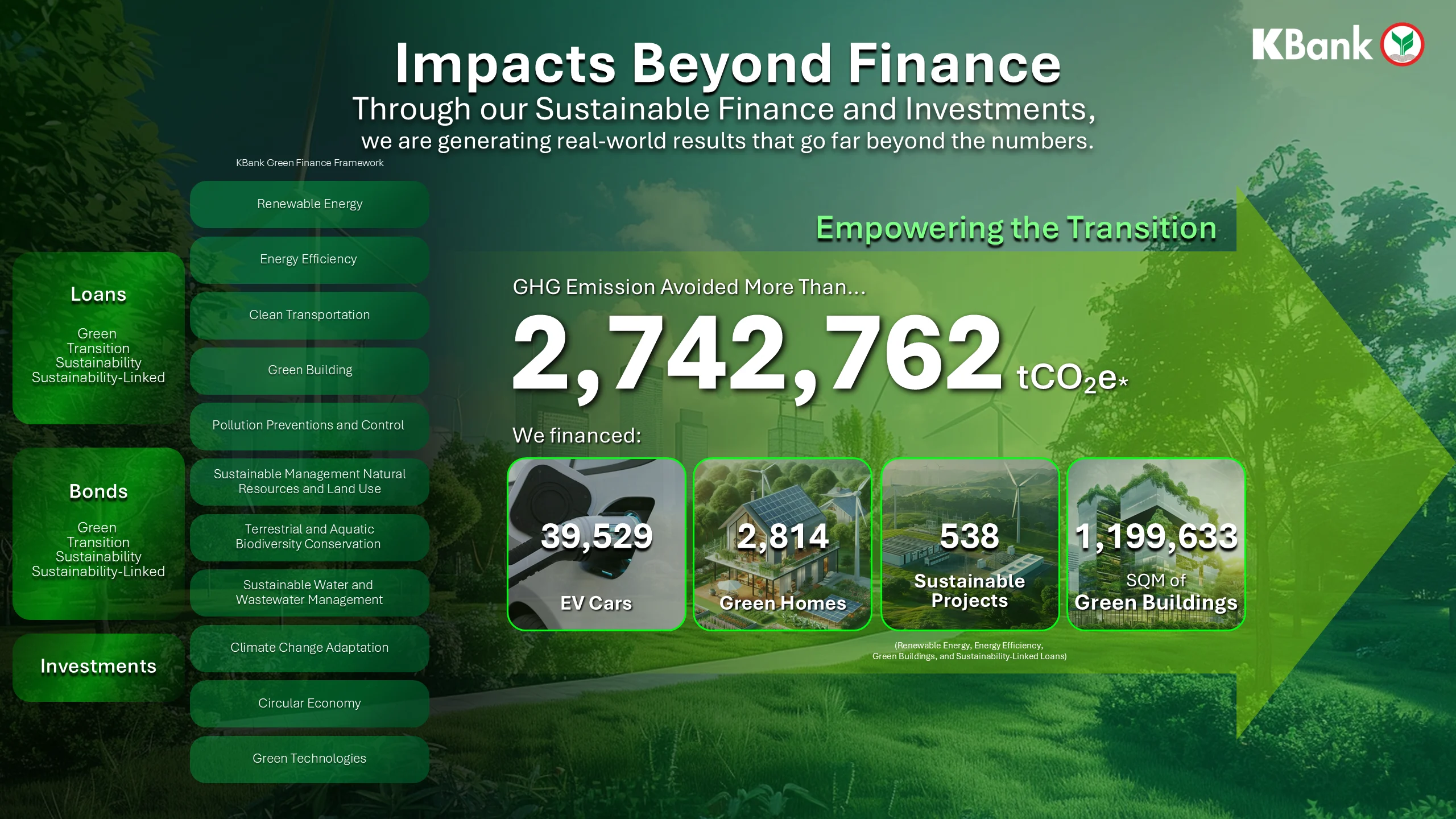 - สนับสนุนสินเชื่อ EV กว่า 39,000 คัน และอาคารเขียว 1 ล้าน ตร.ม.