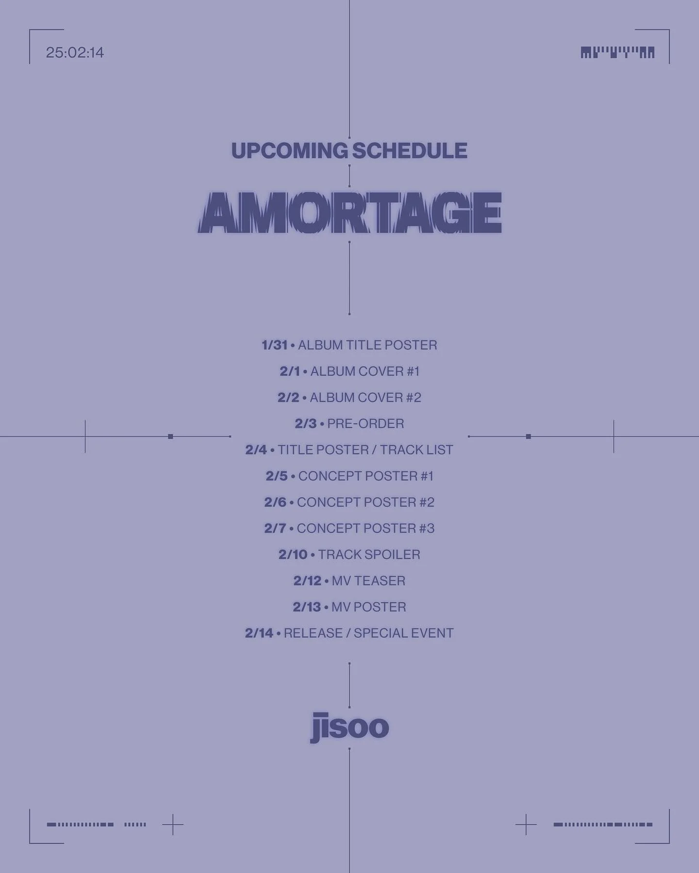 สำหรับมินิอัลบั้มโซโล่ AMORTAGE เป็นผลงานเดี่ยวครั้งใหม่ของจีซู และเป็นการถือกำเนิดอีกครั้งของซูเปอร์สตาร์สาวระดับโลกคนนี้ AMORTAGE เป็นการผสมผสานระหว่างคำว่า “amor” (ความรัก) และ “montage” (การตัดต่อ) สะท้อนถึงขั้นตอนทางอารมณ์ของความรัก และช่วงเวลาต่าง ๆ ของความสัมพันธ์ โดยเพลงทั้งหมดในอัลบั้มนี้จะนำเสนอภาพเหล่านี้ไว้อย่างชัดเจน