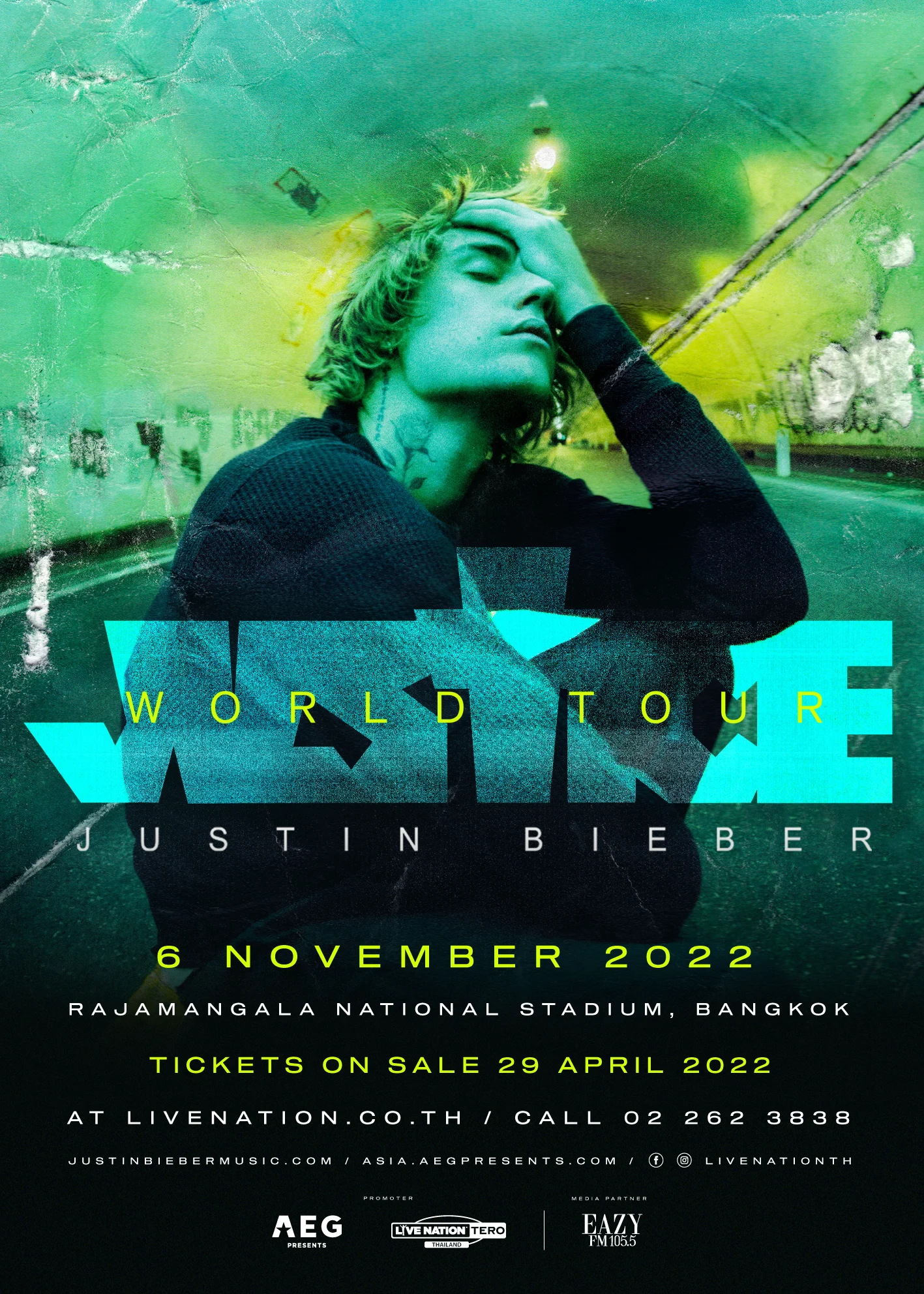 จัสติน บีเบอร์ จัสทิส เวิลด์ ทัวร์ แบงค็อก เตรียมจัดเต็ม ยิ่งใหญ่ ในเมืองไทย 6 พ.ย. นี้ ที่สนามราชมังคลาฯ เปิดขายบัตร 29 เม.ย. นี้ ที่ไทยทิคเก็ตเมเจอร์ และตารางทัวร์ในเอเชียจะประกาศเพิ่มเติมเร็วๆ นี้