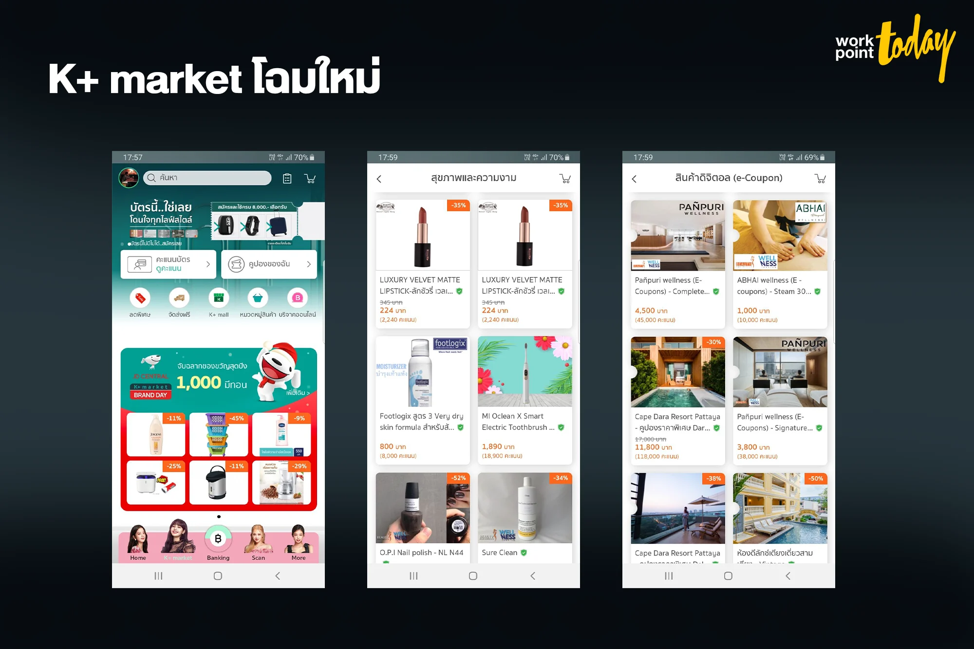 ล่าสุด KBank ยักษ์ใหญ่ทางด้านดิจิทัล แบงก์กิ้งของประเทศไทย ได้ปรับปรุงแพลตฟอร์ม K+ market โฉมใหม่ ที่พัฒนา Interface ให้ผู้ใช้งานได้สะดวกมากขึ้น โดยยังคงคอนเซปต์เป็นแหล่งรวมดีลเด็ด และโปรโมชันสินค้าดีๆ หลากหลายรูปแบบสำหรับลูกค้า K PLUS โดยเฉพาะ ซึ่งสินค้าทั้งหมดผ่านการคัดสรรทั้ง Official Brand และผู้ประกอบการ SME ที่มีคุณภาพมาแล้วอีกด้วย