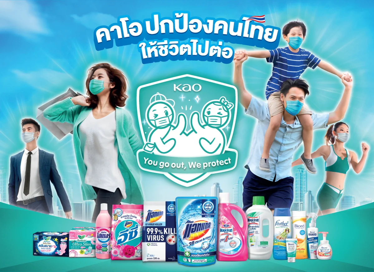 ด้วยสภาวการณ์ปัจจุบัน ที่การหยุดอยู่กับบ้านไม่ออกไปไหน อาจจะไม่ใช่คำตอบที่ดี่สุดอีกต่อไปแล้วในการป้องกันโรคโควิด-19 หลายคนต้องกลับมาใช้ชีวิตตามปกติ แคมเปญ “You Go Out, We Protect คาโอปกป้องคนไทย ให้ชีวิตไปต่อ” จึงถือกำเนิดขึ้น ด้วยแนวคิดที่ว่า การใช้ชีวิตนอกบ้านหลังจากนี้ไปต้องปลอดภัย และถูกสุขอนามัย บริษัท คาโอ อินดัสเตรียล (ประเทศไทย) จำกัด (KAO) ตั้งเป้าเดินหน้าแคมเปญนี้ต่อเนื่องจากแคมเปญเดิม “รักนะการ์ดอย่าตก Don’t Let Your Guard Down” ในการสานต่อเจตนารมณ์ปกป้องคนไทยจากโควิด-19