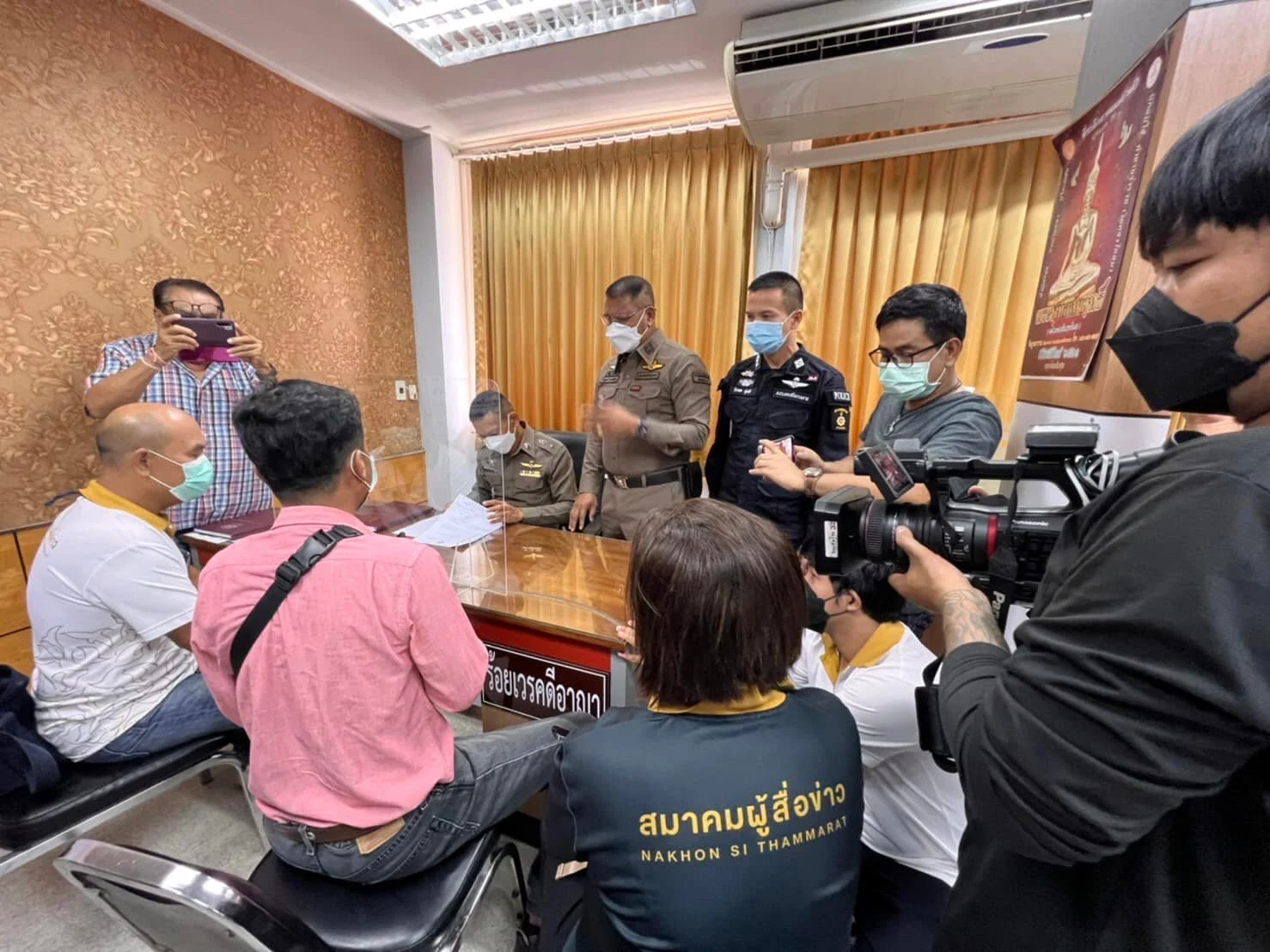 นายกฯ สมาคมผู้สื่อข่าวฯ กล่าวว่า จากเหตุการณ์นั้นไม่ได้ระบุชื่อบุคคลใด แต่เป็นการสื่อสารที่ทำให้ผู้สื่อข่าวนครฯ โดยรวมได้รับความเสียหาย ถูกเข้าใจผิดว่าเรียกรับเงิน ถูกดูถูก และเกลียดชัง จึงได้มาลงบันทึกประจำวันไว้เป็นหลักฐาน โดยมี พ.ต.ท.อาคม จอนนุ้ย รอง ผกก.สอบสวน หน.พนักงานสอบสวน รับแจ้งความเพื่อลงบันทึกประจำวันแ และสอบสวนหากเข้าข่ายการกระทำความผิดก็จะขอให้มีการดำเนินคดีตามขั้นตอนต่อไป