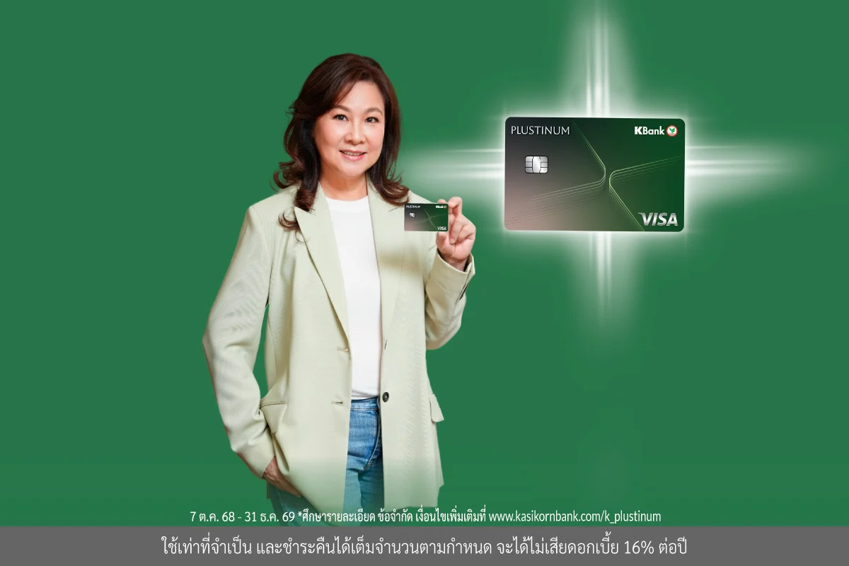 สำหรับลูกค้าใหม่ สมัครบัตรเครดิต KBank PLUSTINUM** รับคะแนน K Point เพิ่มอีก 3,000 คะแนน รวมรับ K Point สูงสุด 268,000 คะแนน (เมื่อใช้จ่ายตามที่กำหนด) และสามารถนำคะแนน K Point ไปเลือกแลกของแบรนด์ดังคุณภาพดี มูลค่าสูงสุด 39,900 บาท ตั้งแต่วันที่ 7 ตุลาคม 2568 – 31 ธันวาคม 2568