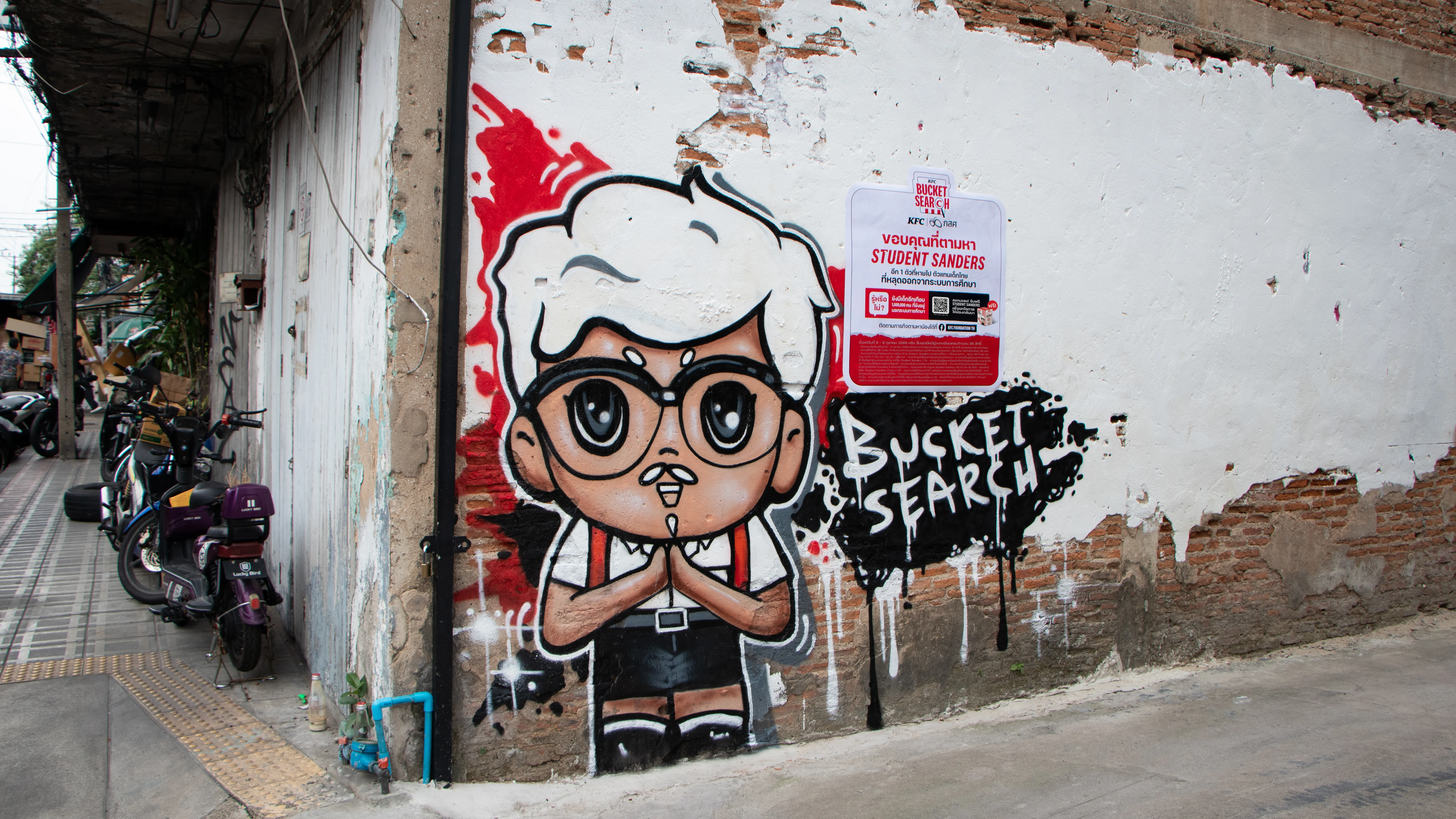ดังนั้น มูลนิธิเคเอฟซี ประเทศไทย โดยโครงการ KFC Bucket Search ที่มีวัตถุประสงค์เกิดขึ้นเพื่อตามหาและพัฒนาศักยภาพของเด็กนอกระบบการศึกษาจนกว่าจะพร้อมกลับเข้าสู่สังคมอีกครั้ง จึงได้เลือกปลุกกระแสการตามหา Student Sanders ให้กลายเป็นภารกิจระดับประเทศ ผ่านแคมเปญ “The Missing Figure – เด็กนักเรียนที่หายไป” เพื่อสร้างการตระหนักรู้ เปิดพื้นที่ให้สังคมได้คืนโอกาสที่แท้จริงให้กับเยาวชนไทย และเป็นการระดมทุนเปิดรับเงินบริจาคเพื่อนำมาส่งเสริมเด็กๆ ในโครงการ ให้ได้กลับไปเรียน เสริมสร้างทักษะอาชีพ และเติมเต็มศักยภาพให้เกิดเป็นโอกาสที่ช่วยหล่อหลอมความฝันอีกครั้ง โดยช่วยด้านทุนการศึกษา อุปกรณ์การเรียน เงินเริ่มต้นการประกอบอาชีพ และที่สำคัญโอกาสที่จะได้แสดงศักยภาพในพื้นที่ต่างๆ