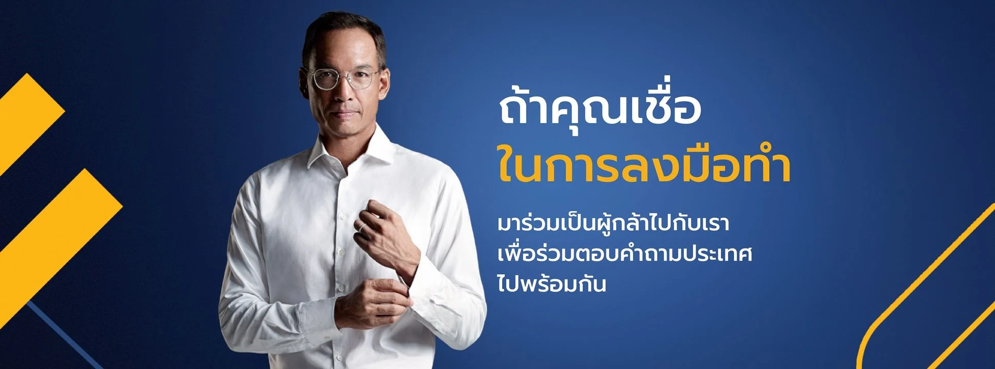 “ถ้าคุณคือผู้กล้าที่อยากเปลี่ยนแปลงประเทศ มาสมัครเป็น ส.ส. กับเรา ในขณะที่สังคมไทยกำลังตั้งคำถามถึงปัญหา ความขัดแย้ง ยังมีคำถามมากมาย ที่ยังไม่เคยได้รับคำตอบจากคำถามที่สั่งสมมายาวนานหลายปี ที่คอยฉุดรั้งให้ประเทศไม่เดินไปข้างหน้า คำถามถึงปากท้อง ความเป็นอยู่ และเศรษฐกิจที่ถดถอย คำถามถึงวิถีการเกษตร ที่ต้องหาทางอยู่รอดในยุคของเทคโนโลยี คำถามถึงการศึกษา ที่ส่งผลถึงปัญหาภาวะขาดแรงงาน คำถามถึงคุณภาพชีวิต ที่สวนทางกับภาษีที่จ่ายไป แต่ไม่ว่าประชาชนจะมีคำถามที่สำคัญและเร่งด่วนขนาดไหน ในหลายปีที่ผ่านมา ก็ยังไม่มีใครคิดที่จะตอบ