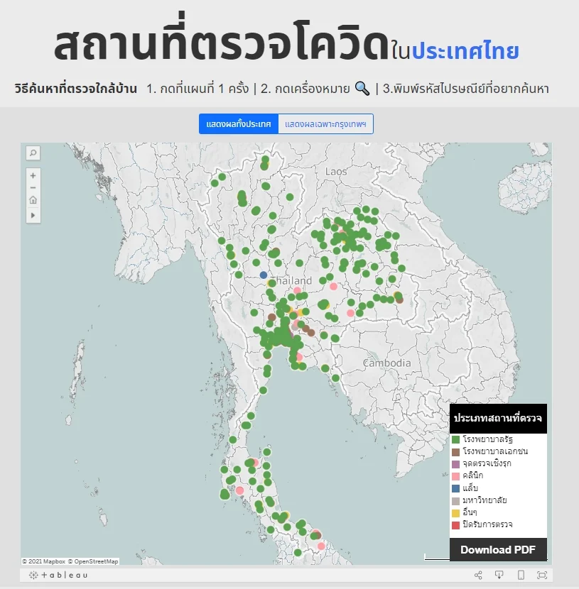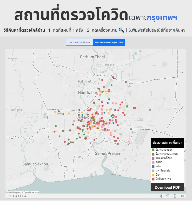 (ตัวอย่าง การค้นหาจุดตรวจโควิดในพื้นที่กรุงเทพฯ)