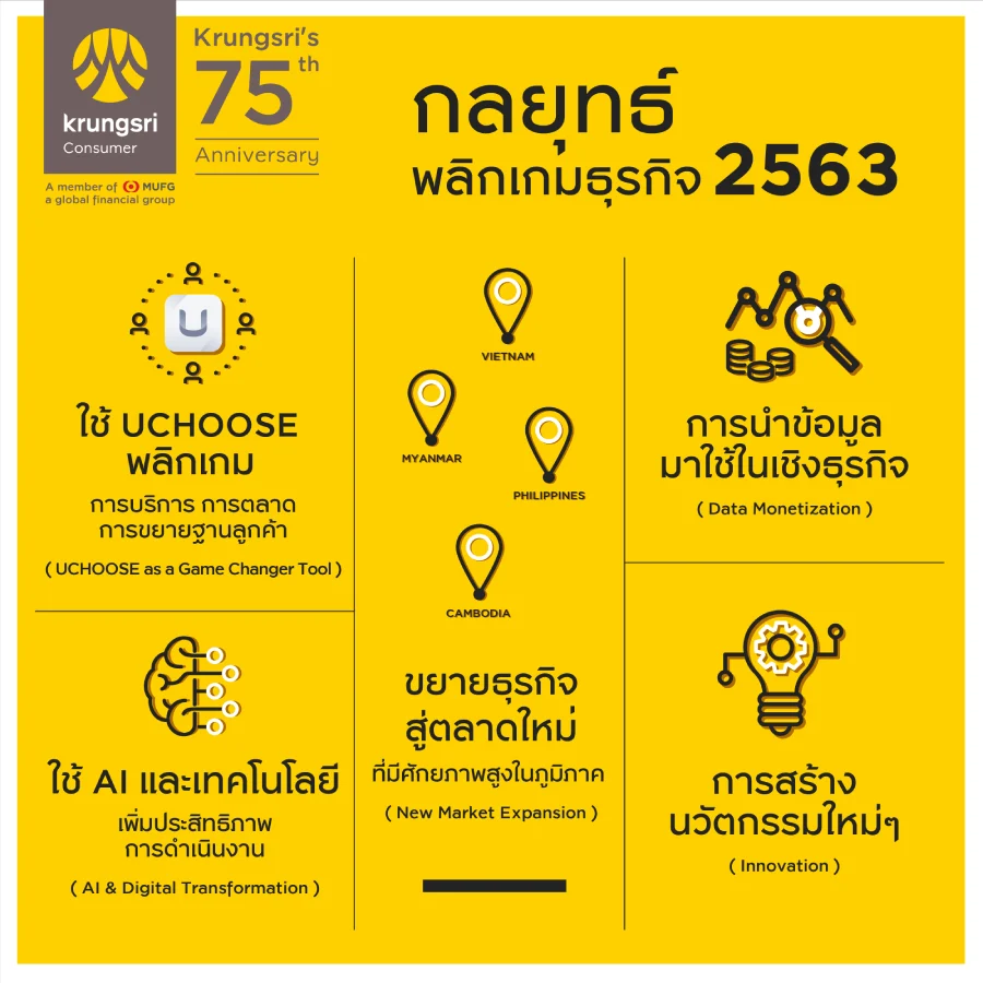 - การใช้แอปพลิเคชั่น ‘UCHOOSE’ ที่พัฒนาเป็นเวอร์ชั่นใหม่ ซึ่งพร้อมให้บริการในเดือนมีนาคม 2563 นี้ เพื่อสร้างประสบการณ์ที่ดียิ่งขึ้นให้กับลูกค้า โดยเฉพาะการบริการ-การตลาด-การขยายฐานลูกค้า